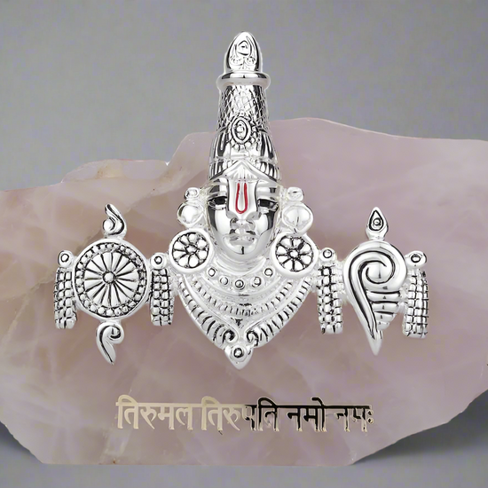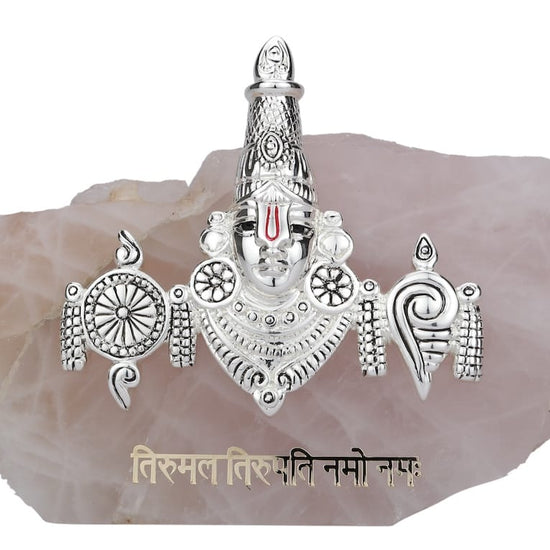 Experience the beauty and purity of Tirupati Balaji Devalaya, made of 999 silver and attached on a stunning rose quartz stone. This unique and sacred piece brings positive energy and promotes love, compassion, and harmony in any space. An essential for your spiritual journey.