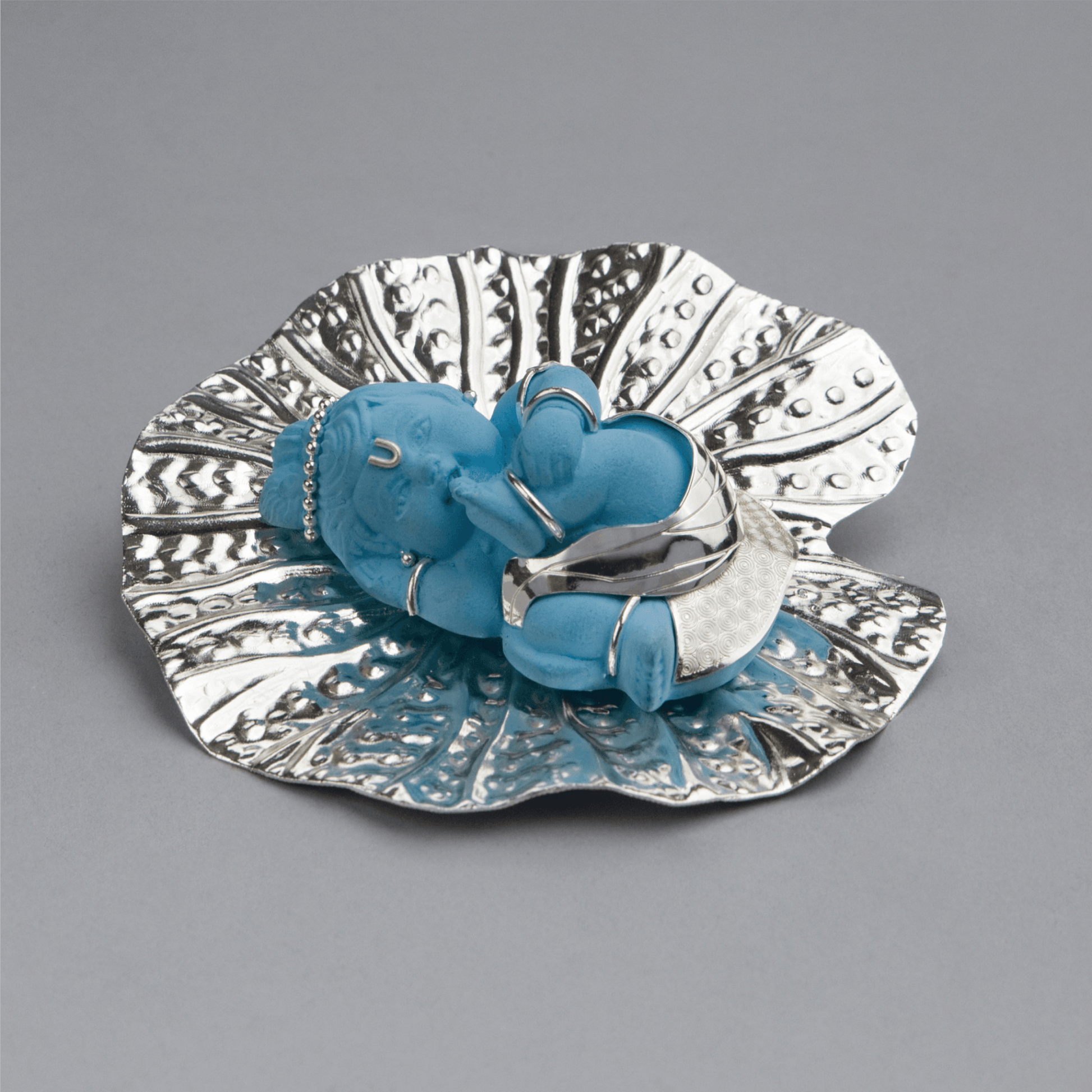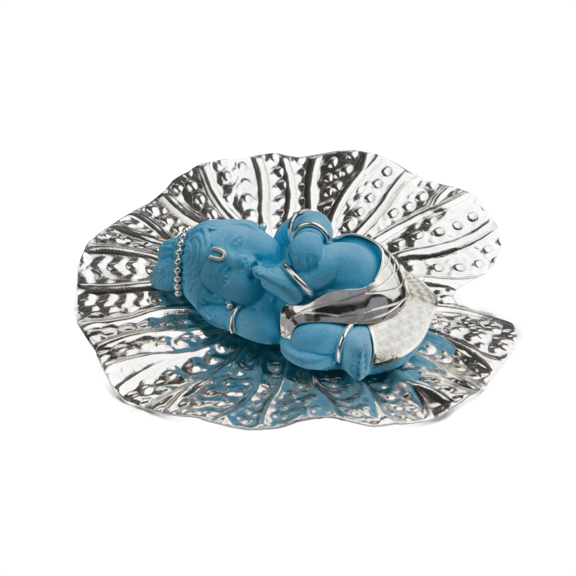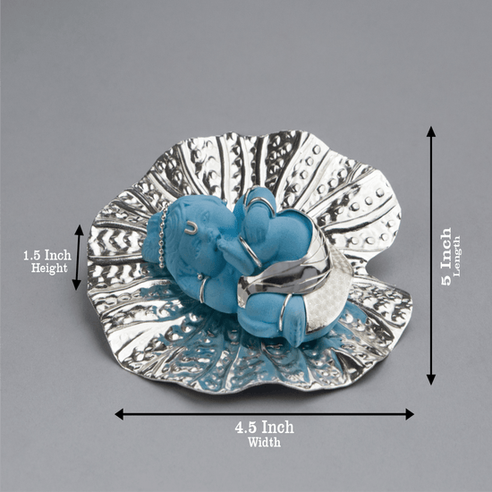 This unique Baby Krishna figurine is crafted from resin and rests on a silver plated metal leaf. This idol is handcrafted by our skilled craftsman to achieve a perfect finish and is apt for gifting or as a keepsake in your pooja room.