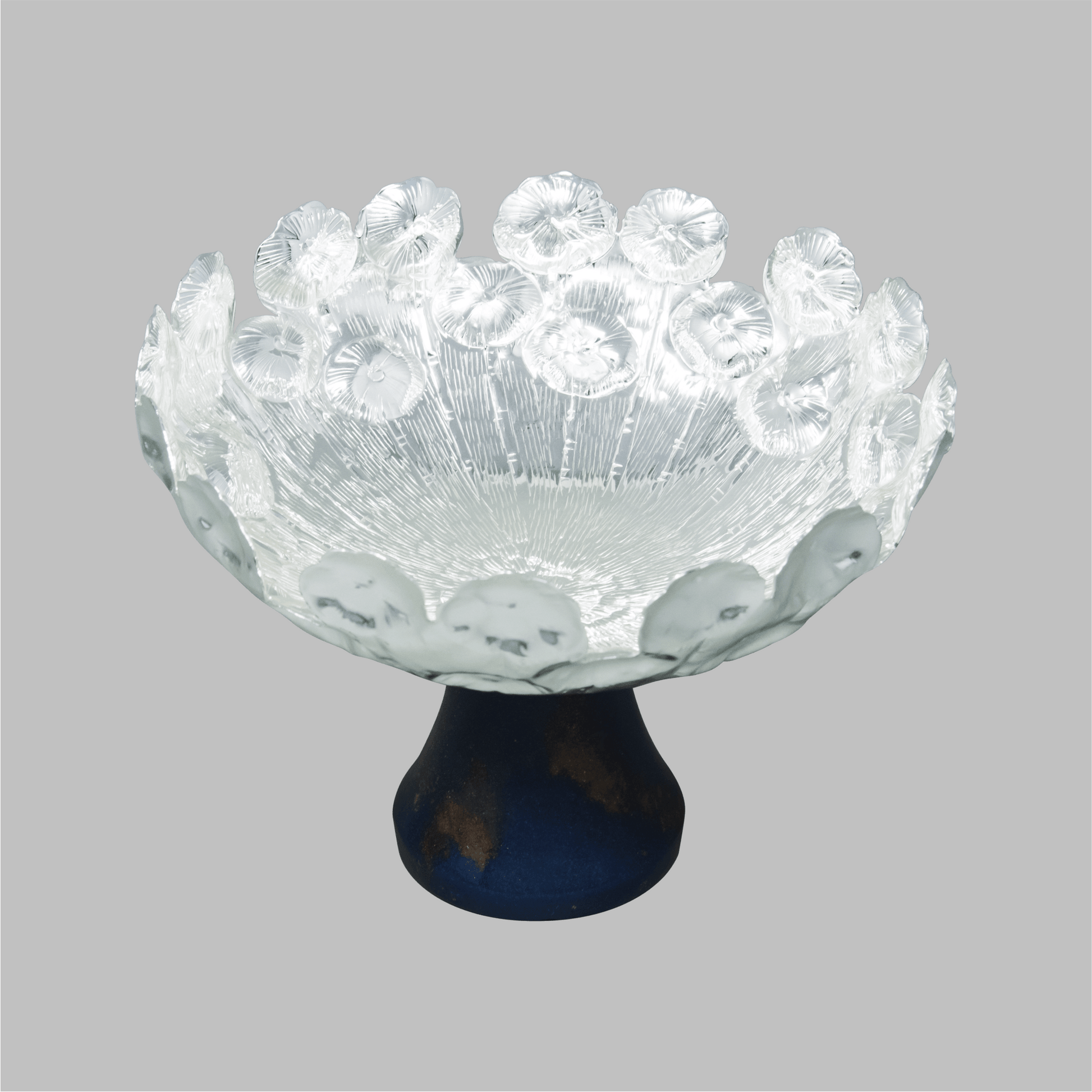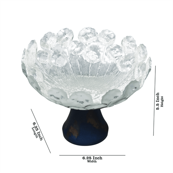 Elevate your décor with this exquisite decorative bowl. Featuring a striking blue base, it's crafted from premium brass and adorned with elegant silver plating. This bowl seamlessly blends traditional craftsmanship with modern design, making it a perfect centerpiece for any room.