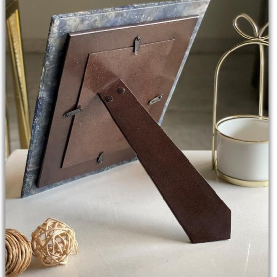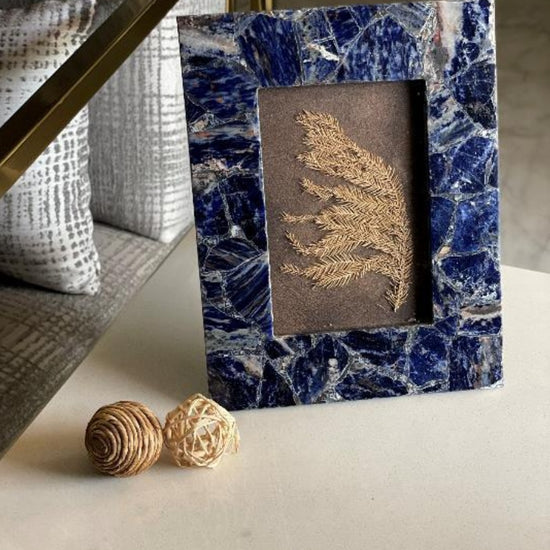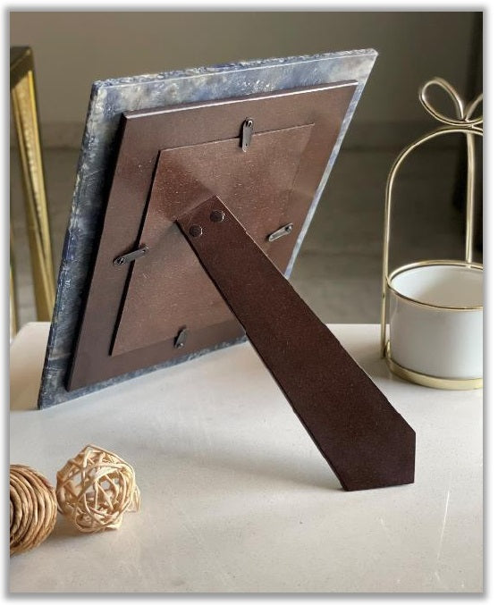Enhance your home decor with our Blue Sodalite Photo Frame. This unique piece features a beautiful fusion of traditional handwork and modern design, crafted with care using precious stone. The perfect addition to any side table, it adds an attractive touch to your living space.