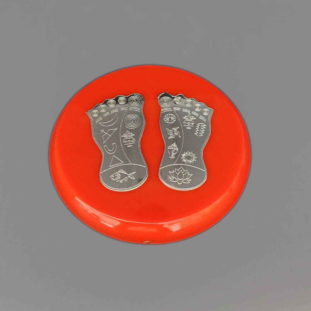 Experience the elegance and spiritual significance of the Charan Paduka on Resin base. Hand-crafted from cut-work brass and silver plating, this sacred symbol brings blessings and guidance to your space. Add a touch of traditional style and positive energy to your home or office.