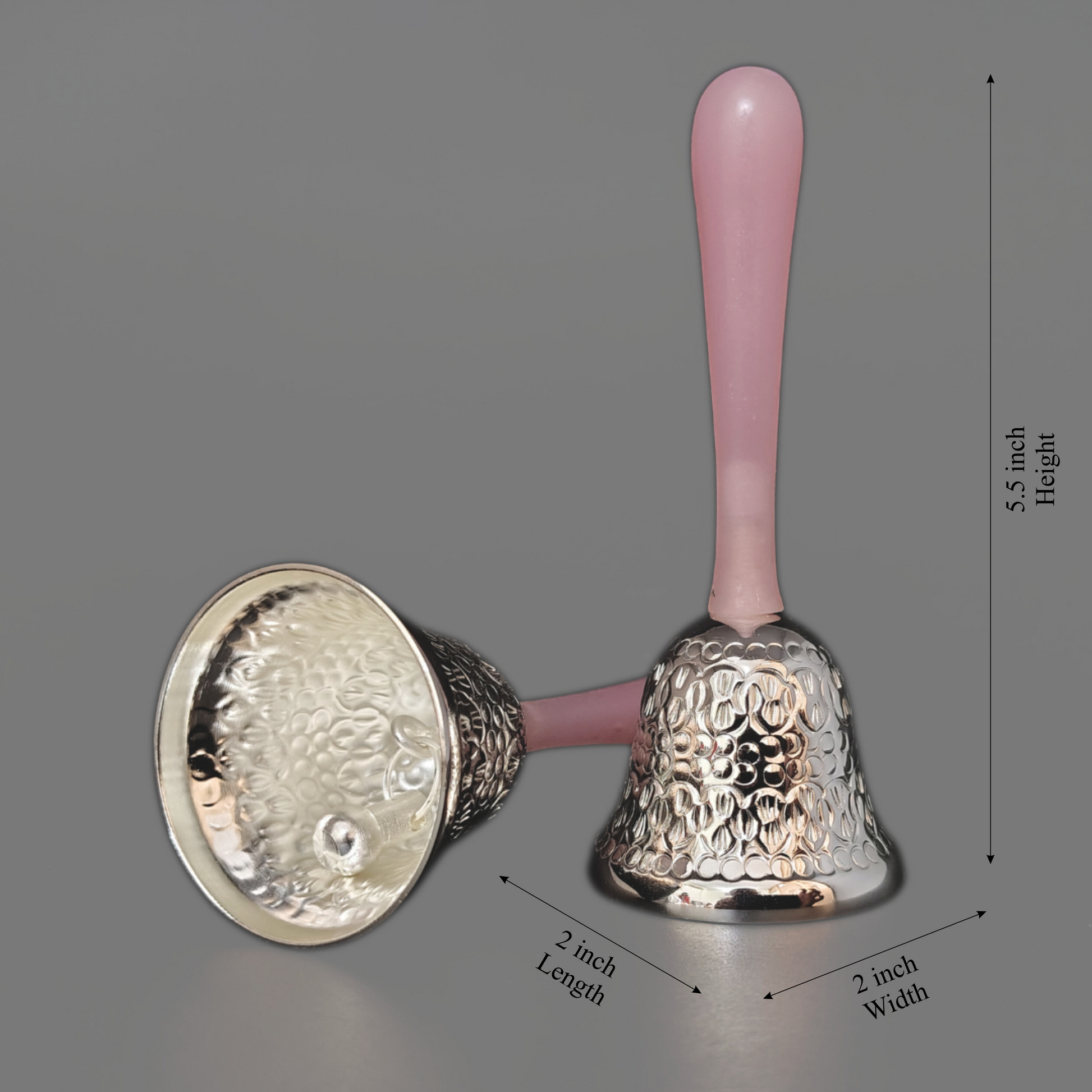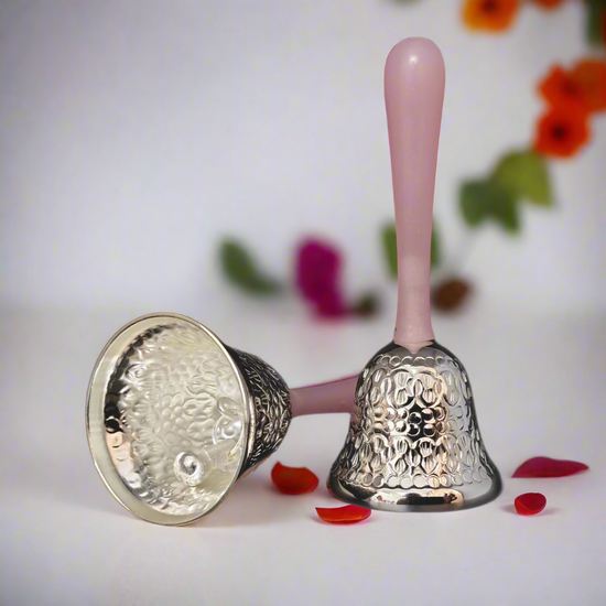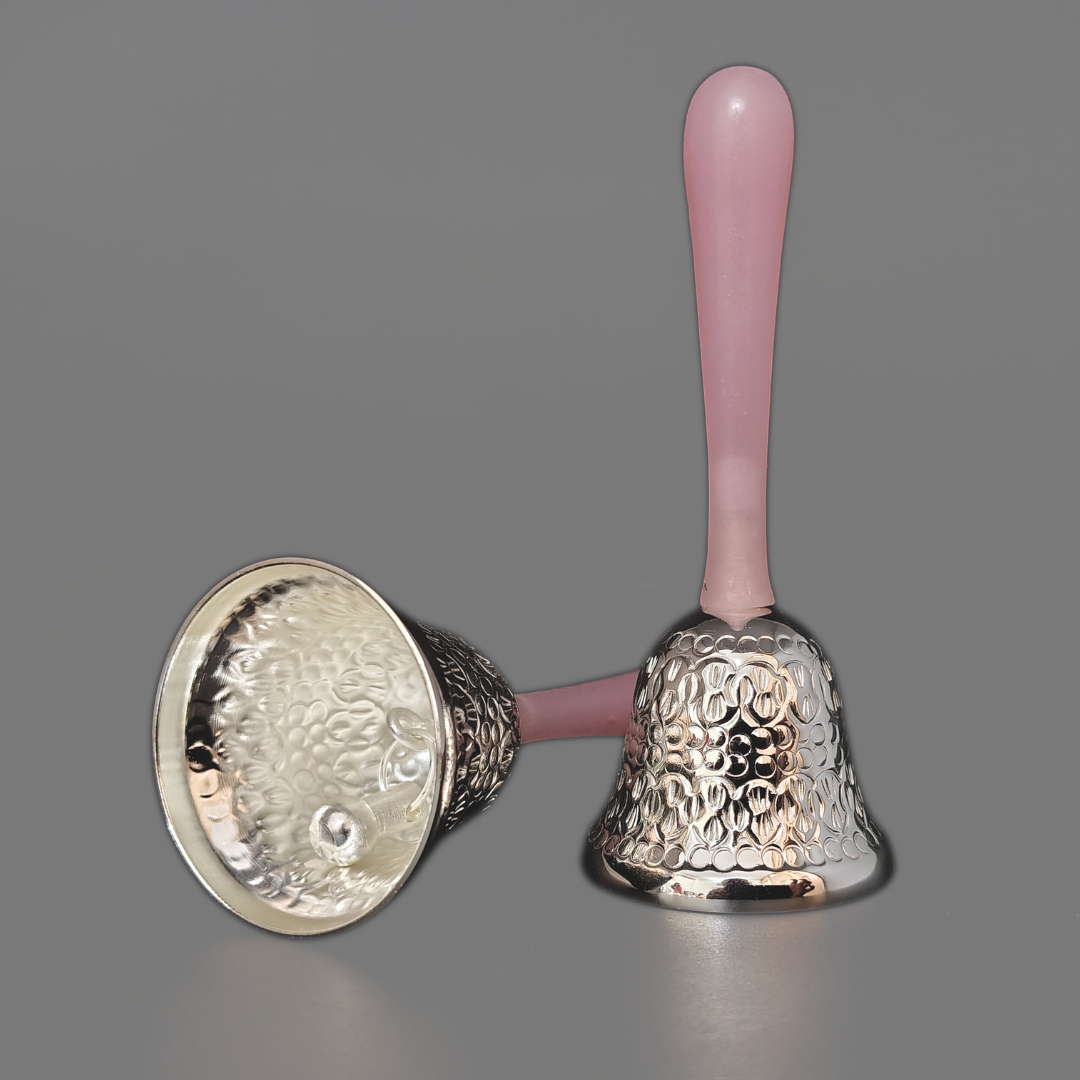 Crafted with precision, the Chased Bell features a brass body with silver plating, perfectly complemented by a handle made of pink resin. This bell is a beautiful addition to any space and produces a clear, resonant sound. Elevate your decor with the charming and elegant Chased Bell.