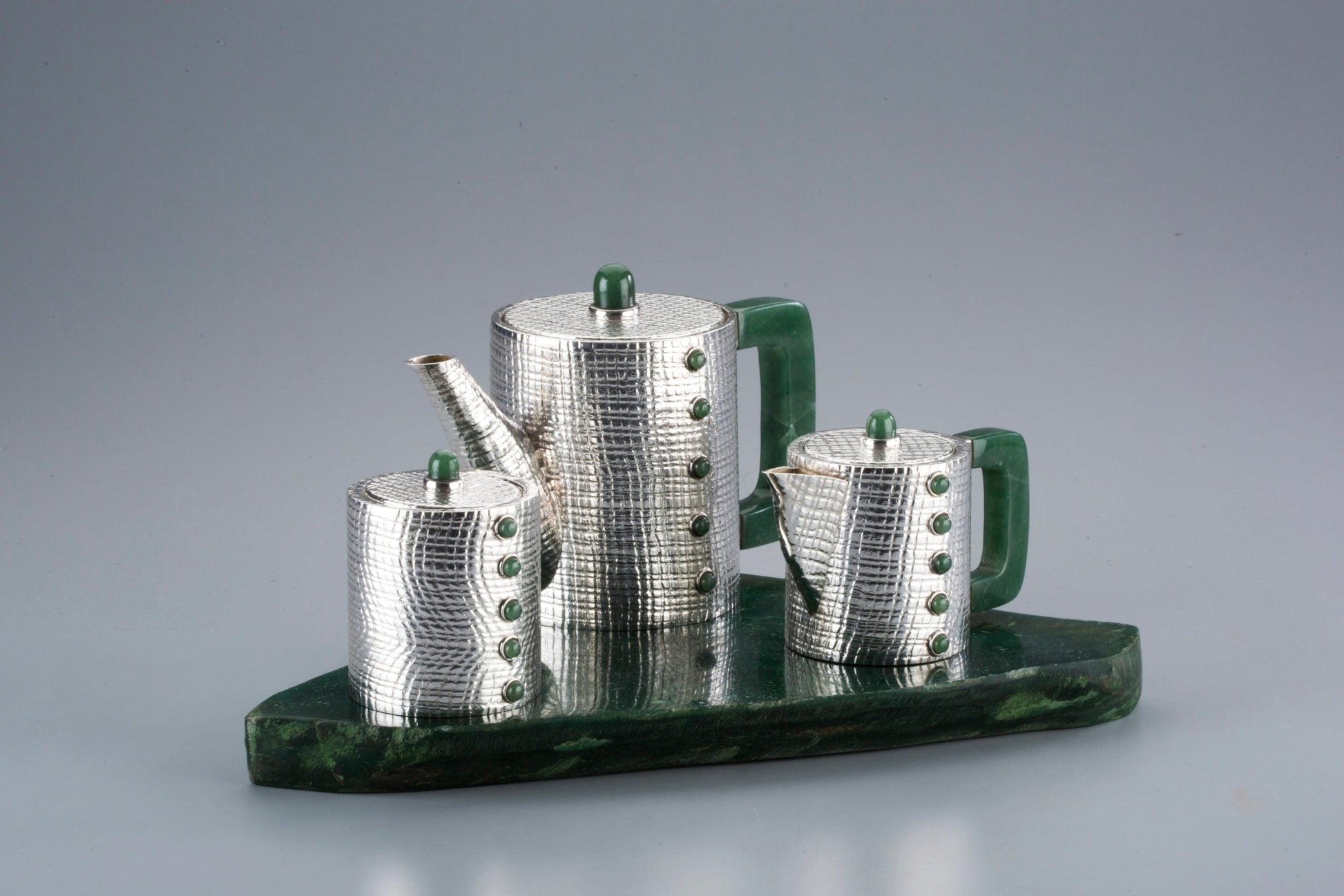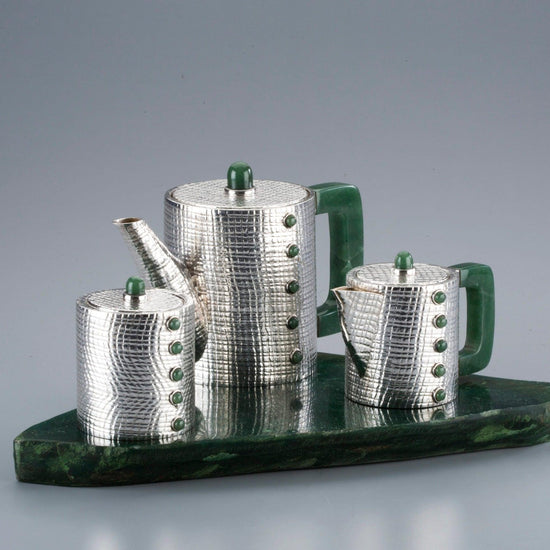 Chequered Tea Set with Indian Jade Stone Handles Set of 3