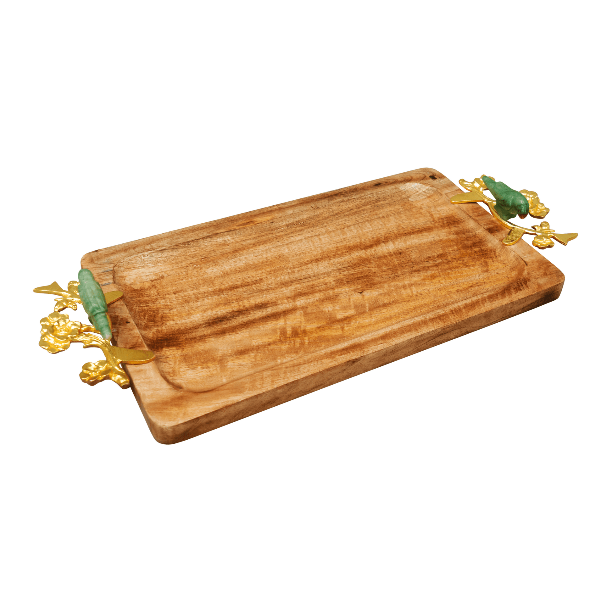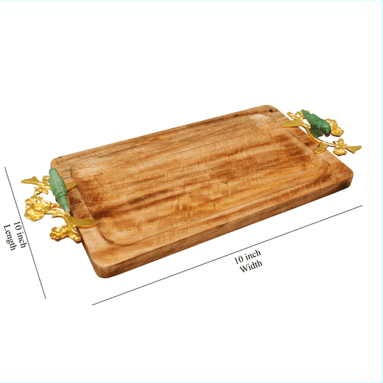 Playful and whimsical parrots accentuate this classic yet contemporary wooden tray, which would be a great addition to your serveware collection. Use it to serve salads, drinks and more. Exquisitely crafted from brass and wood, this is a durable product, when used with car