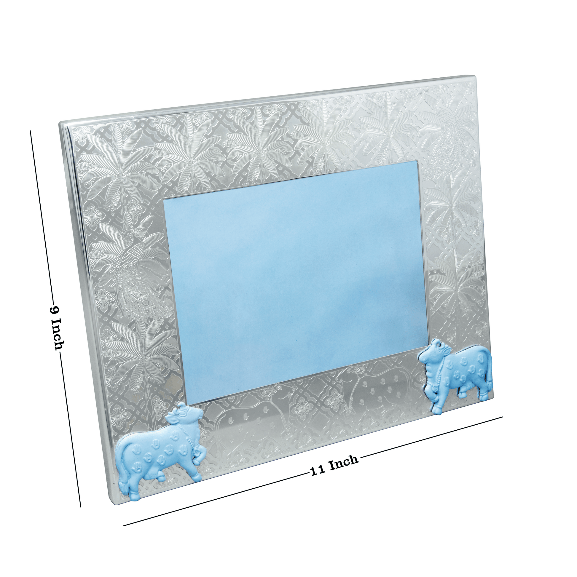 The Cow Pichwai Etched Silver-Plated Photo Frame, crafted from brass and adorned with silver plating, makes for a gift that adds unparalleled grace and regality to any home