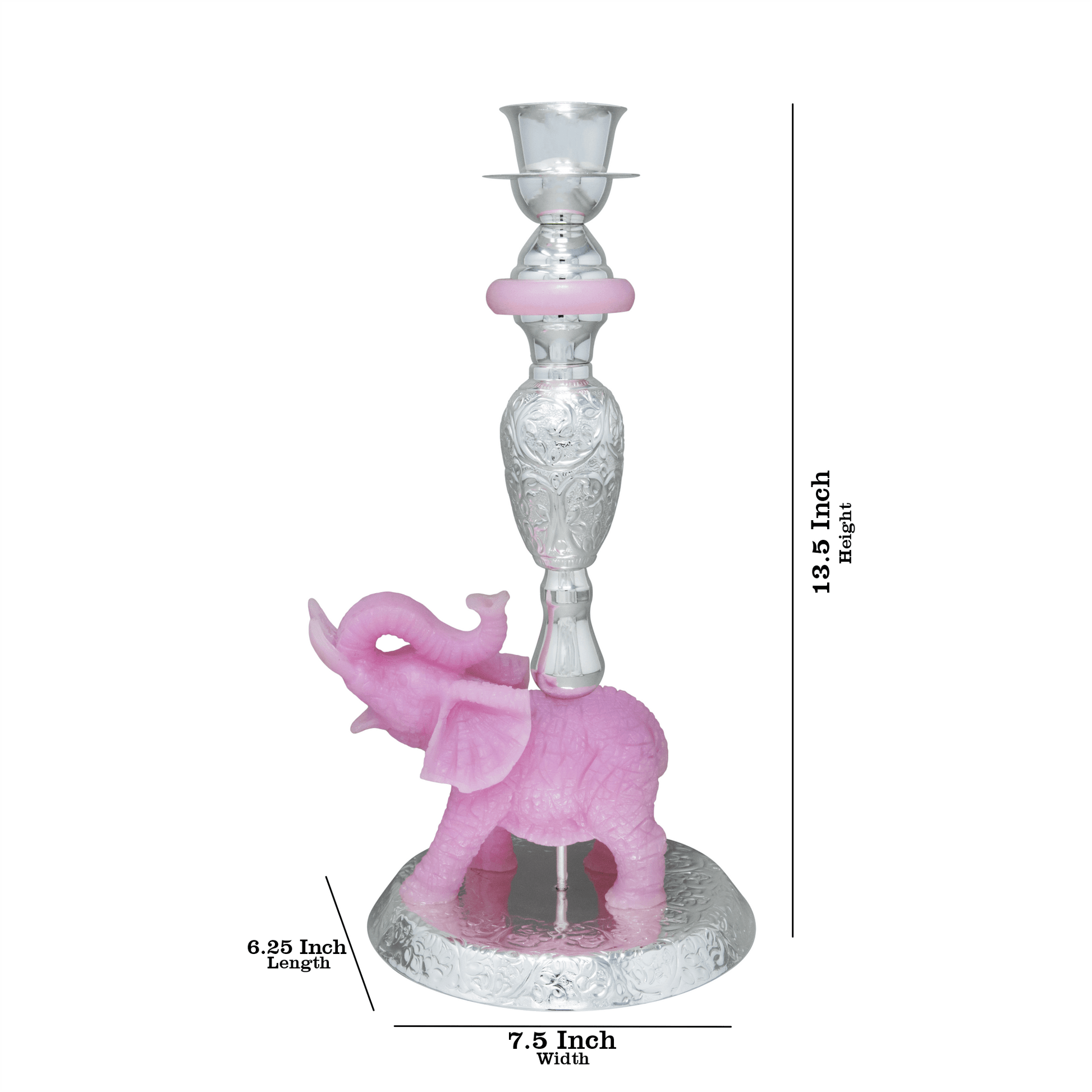 Elephant Samai,exquisite brass candle holders with a luxurious silver plating finish. The centerpiece, a meticulously crafted resin elephant, adds an enchanting touch of elegance to any space.