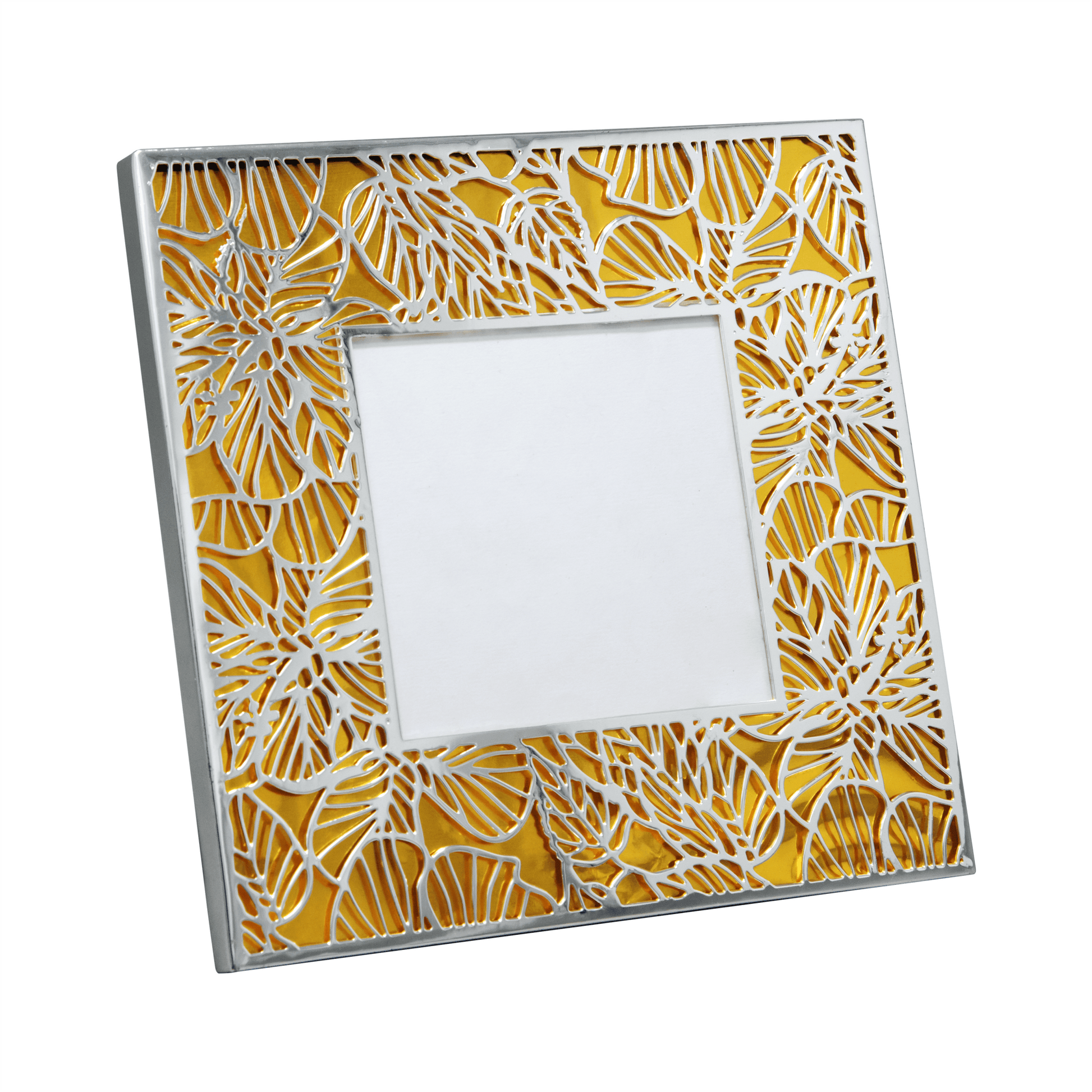 Floral cutwork is offset on a gold background, to create a beautiful frame, perfect for showcasing your favourite photographs. Designed using brass with silver plating, it ensures durability and is easy to maintain. It can be a great housewarming gifting option for your loved ones. Gift this to your favourite loved ones, on their wedding day