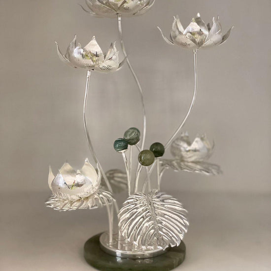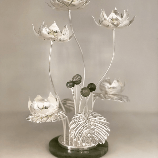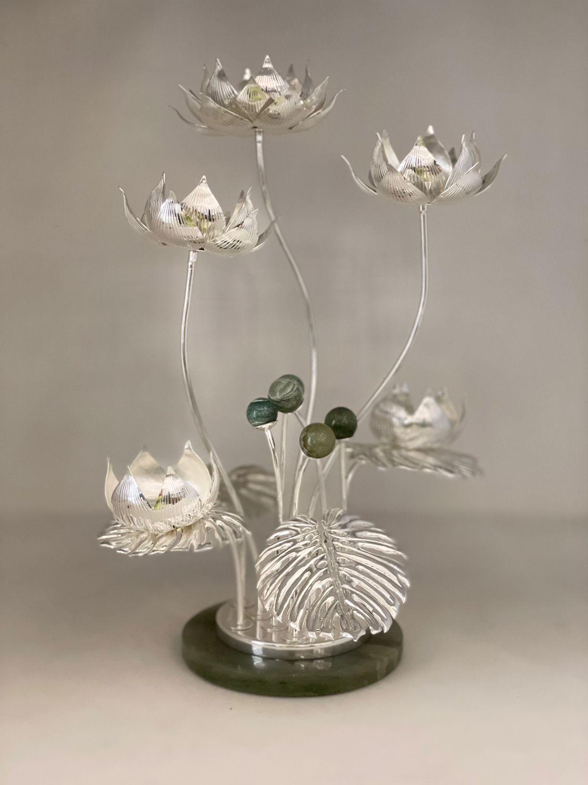 Elevate your space with this stunning Decorative Lotus Tree, crafted from brass with exquisite silver plating. Designed to captivate attention, its intricate detailing and enduring quality promise both durability and effortless maintenance. Add a touch of elegance to any setting with this timeless centerpiece.