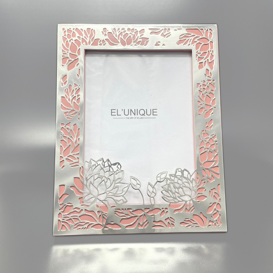 This Floral Jali Photo Frame showcases intricate craftsmanship in its brass and silver plating. The delicate floral jali design lends a touch of elegance and sophistication to any photograph, making it a perfect addition to your home décor. Preserve your memories in an exquisite frame that is sure to impress.