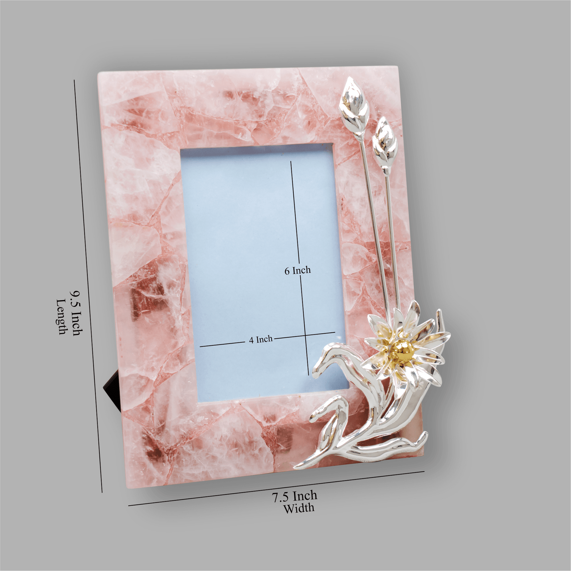 Enhance your cherished memories with the Rose Quartz Floral Photo Frame. Crafted from genuine rose quartz, this exquisite frame radiates a soft pink hue that adds a touch of elegance to any space. Perfect for displaying your favorite photos, its natural beauty and timeless design make it a standout piece in your home decor. Ideal for gifting or personal use, the Rose Quartz Floral Photo Frame transforms your snapshots into lasting keepsakes.