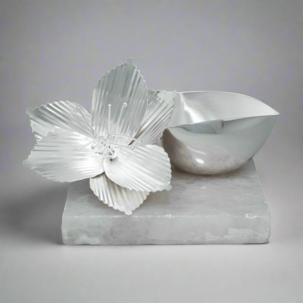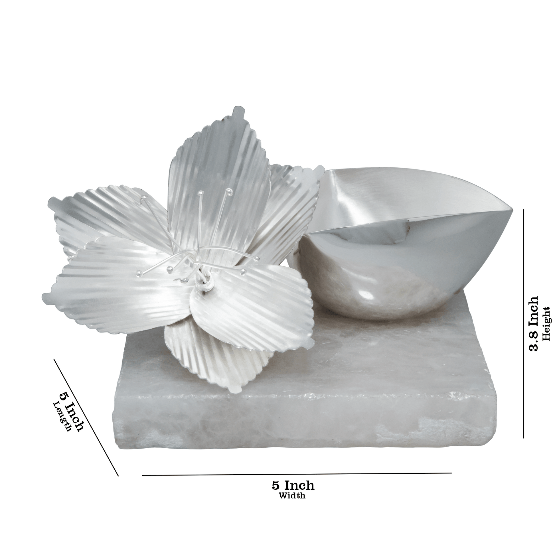 Elevate your décor with this Silver Plated Flower Tikona Bowl, elegantly perched on a luxurious Rose Quartz Platter. Perfect for adding a touch of sophistication to any space, this piece combines the timeless beauty of silver with the serene charm of rose quartz. Ideal for gifting or personal use, it’s a stunning centrepiece that exudes elegance and grace.