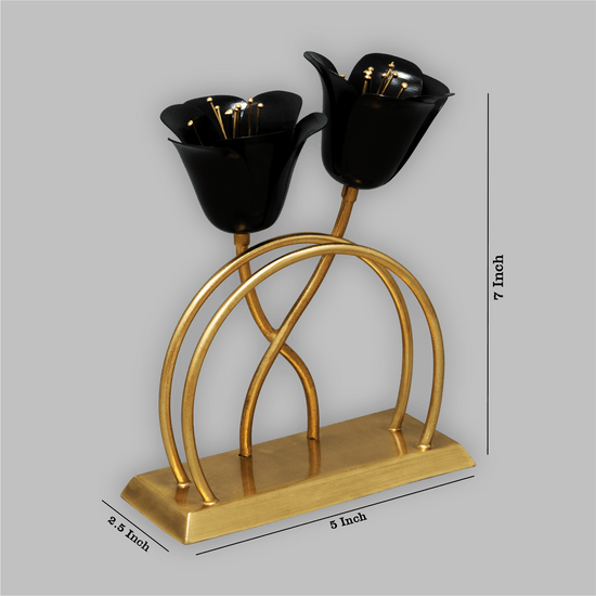 Accessories in style with this golden card holder with black floral accents. Sleek, yet trendy, it holds cards safely, while livening up your desk. Makes a great gift for a friends new office.