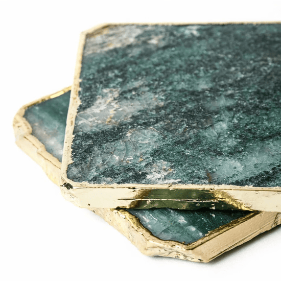 Green Aventurine Coaster with Golden Gilded (Set of 4)