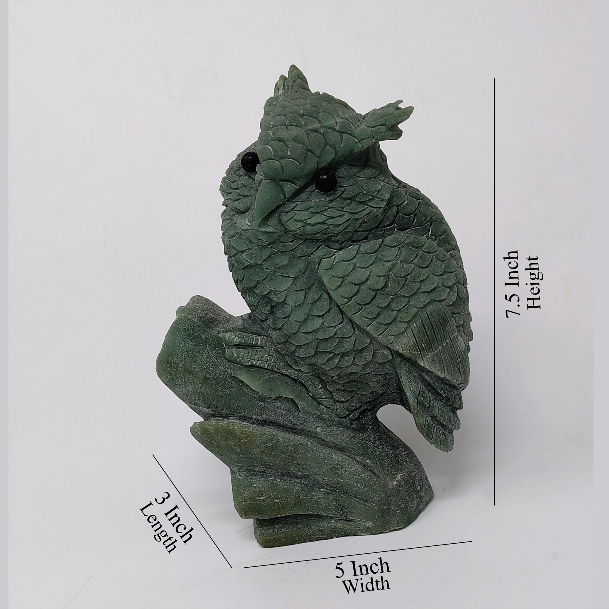 Crafted from genuine green natural jade, this exquisite owl sculpture is a true showpiece. Its intricate details and lifelike appearance make it a standout piece in any collection. Add a touch of elegance to your home decor with this stunning figurine.