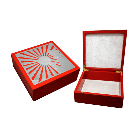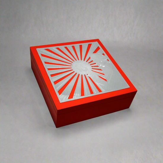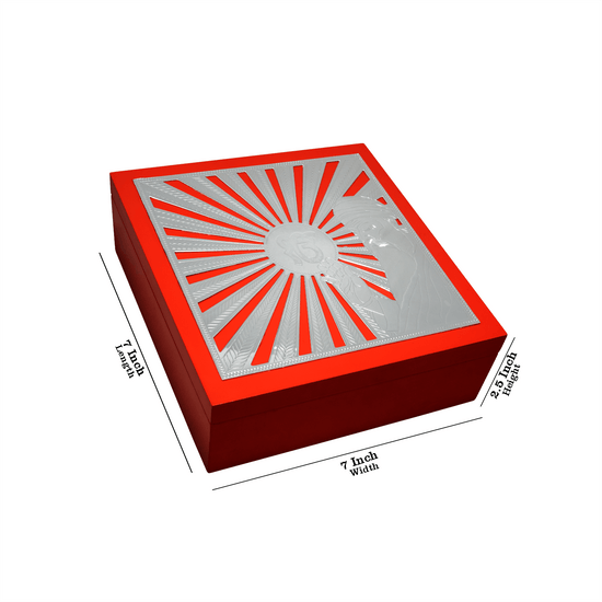 The Guru Nanak Ji Box is a rectangular container typically crafted from materials such as wood, metal, or cardboard, often featuring a lid or removable cover. It is designed to hold various items, with examples including a box of candy purchased as a gift.