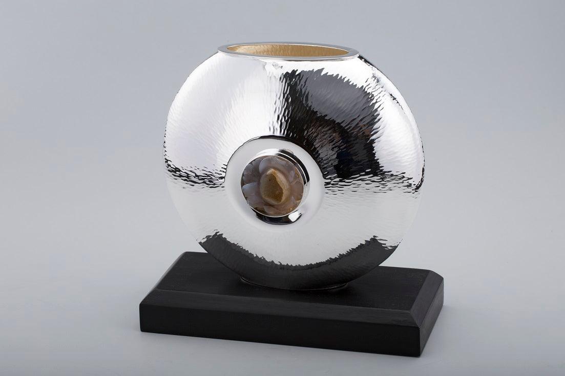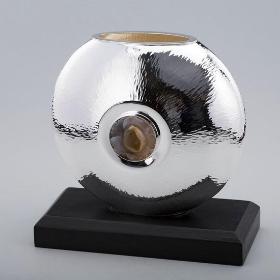 Hammered Elliptical Shaped Vase with Agate Flower Sterling Silver