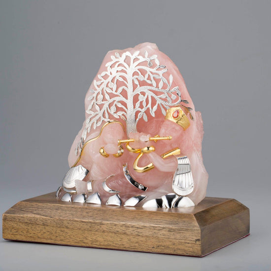Hand Carved Rose Quartz Abstract Radha Krishna with Silver Jewellery