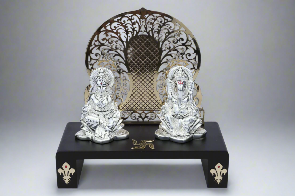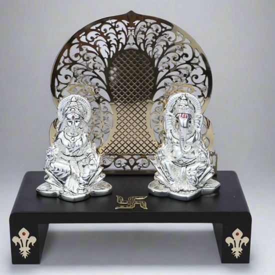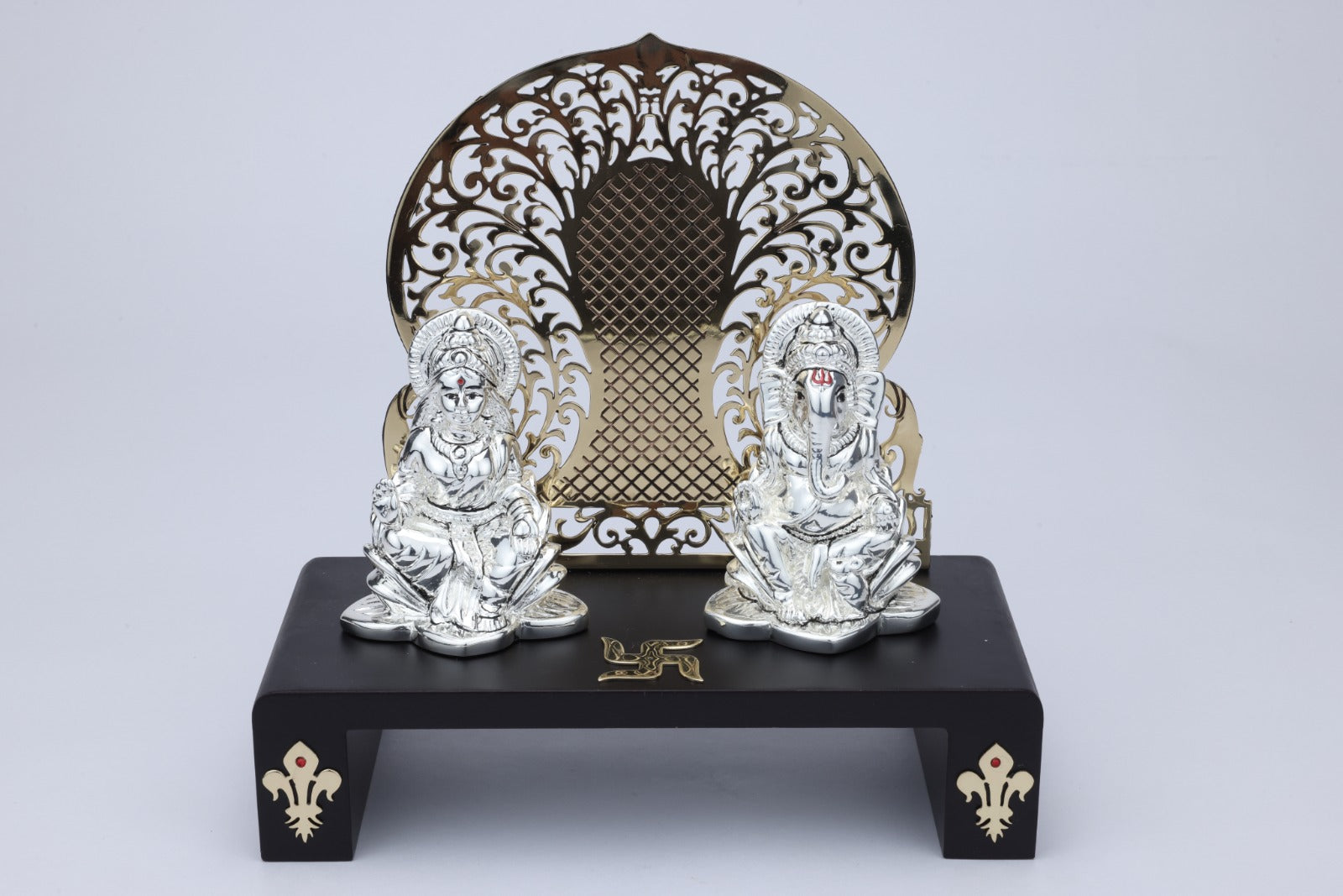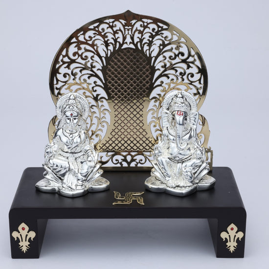 This Kamal Lakshmi & Ganesh Singhasan is crafted from pure 999 silver, making it a valuable and timeless addition to your home decor. Its intricate design and high-quality material ensure a touch of elegance and spiritual significance. Perfect for showcasing your devotion and adding a touch of luxury to any space.