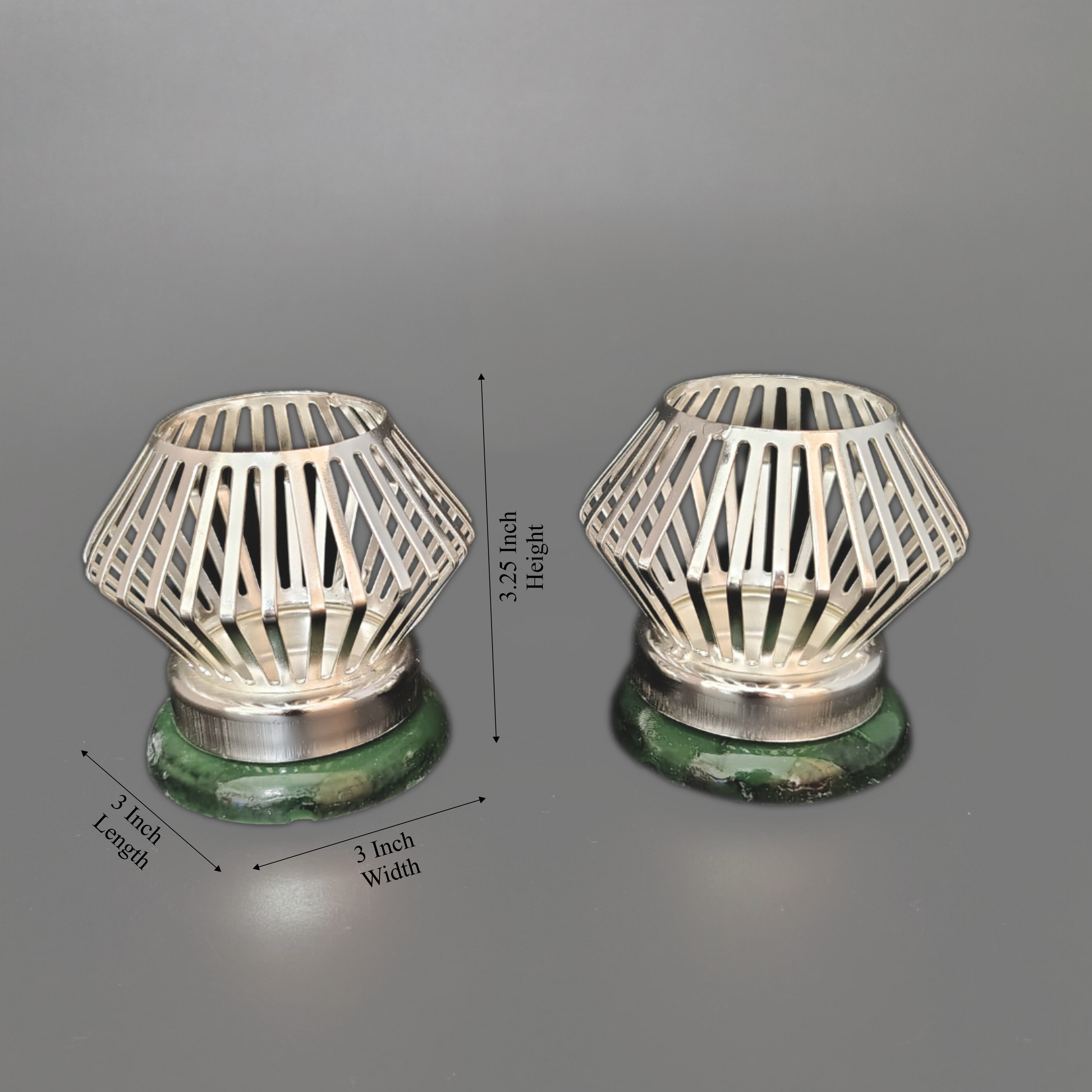 Experience the sleek and modern design of this Linear Tea Light Holder. Crafted from brass with silver plating, this set of two holders features a vibrant green base made from high-quality resin. Add a touch of elegance to any room with these stylish and functional candle holders.