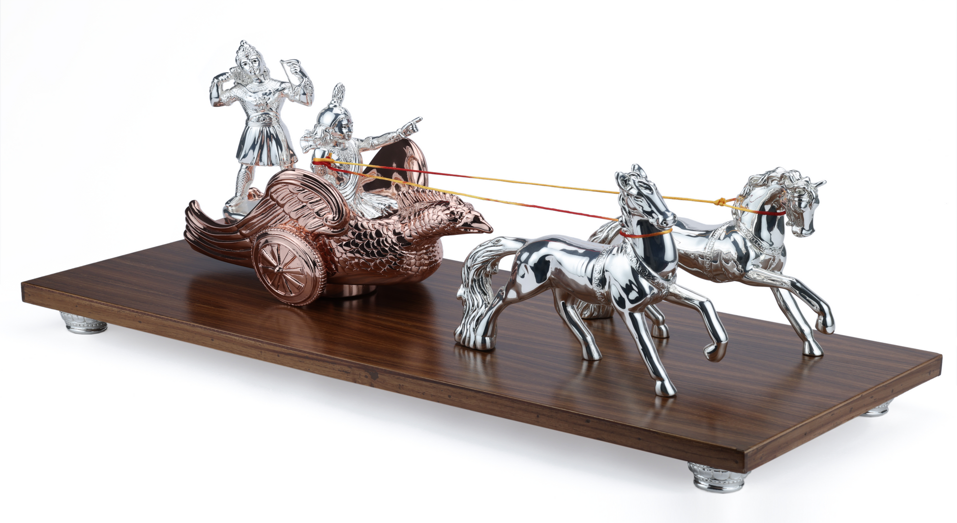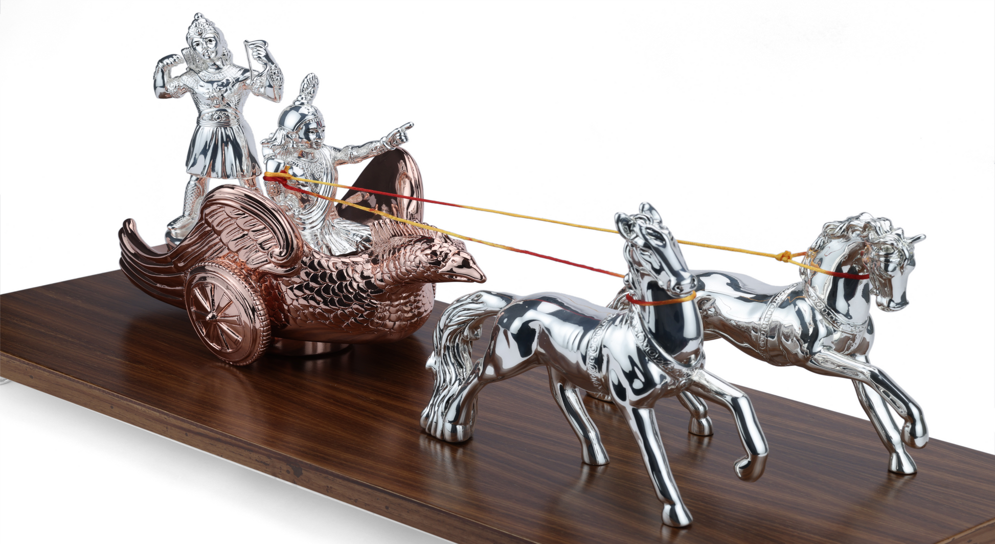 Lord Krishna and Arjun Rath Chariot Horse on Wooden Base