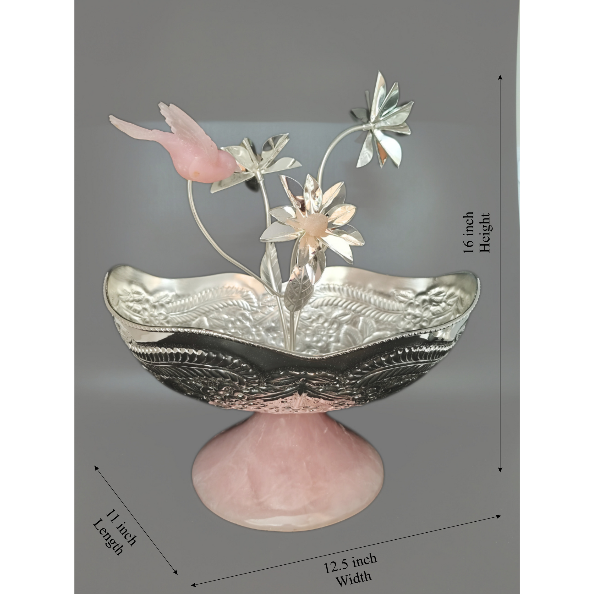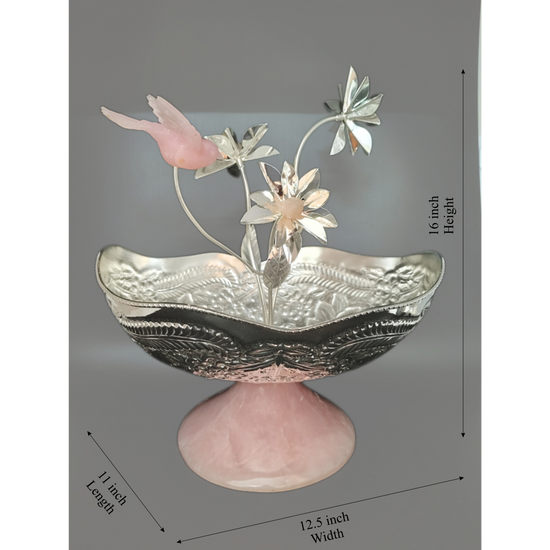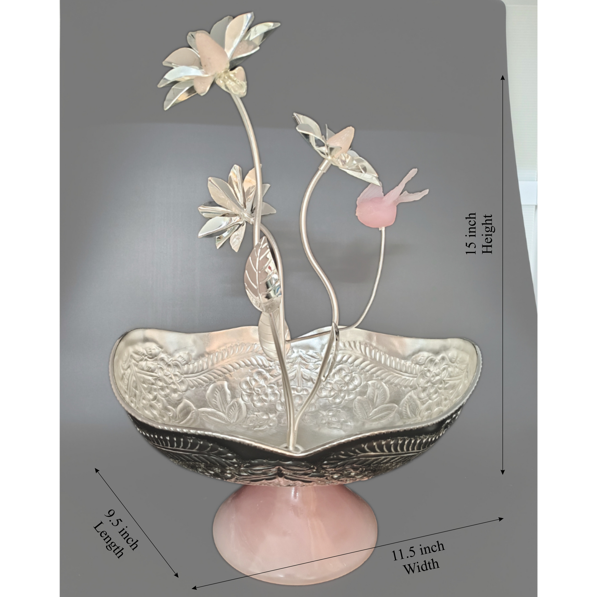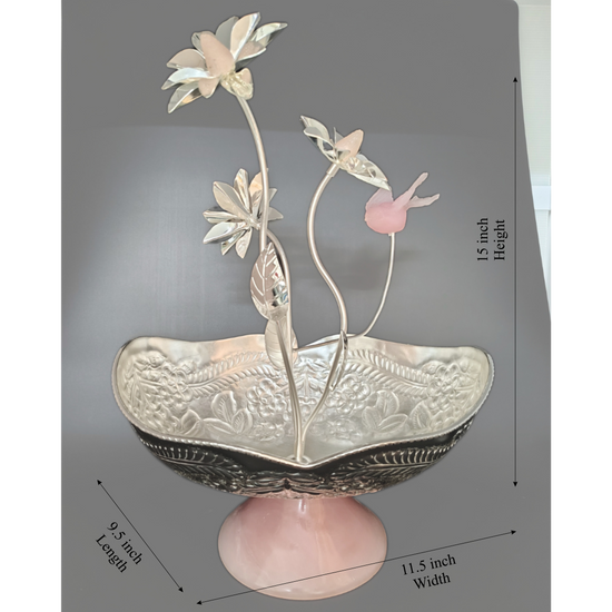 Crafted from brass with silver plating, the Magnolia Center piece adds an elegant touch to any room. With its intricate design and durable materials, it will remain a beautiful and sophisticated centerpiece for years to come. Elevate your decor with this timeless piece.