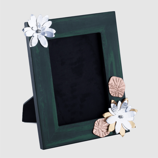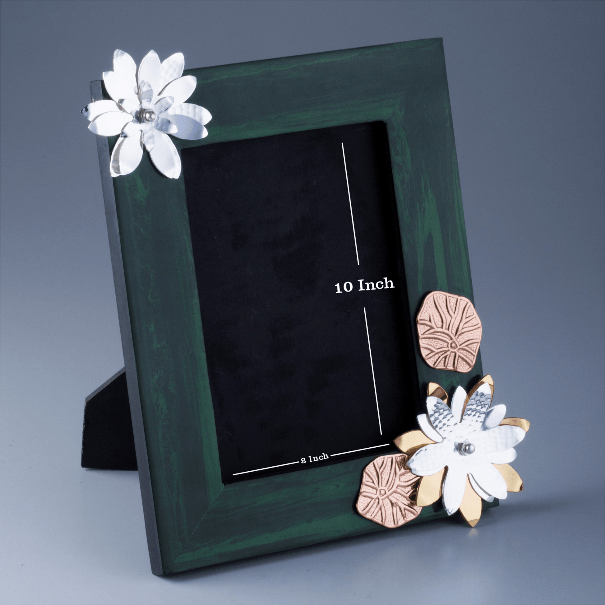 Enhance your cherished memories with this Silver Plated Photoframe, featuring intricate flowers on a stunning Composite Green Malachite backdrop. Elevate your decor with this elegant piece, blending timeless beauty with a touch of natural allure. Perfect for displaying your favorite moments with style and sophistication. Ideal for gifting or adding a touch of luxury to your home.