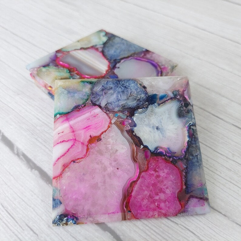 Protect your tabletop with our Mix Agate Coaster Set. Each coaster is crafted with precision and features a fusion of traditional handwork and modern design. Made from precious stone, these coasters are both functional and decorative. Set of 4.