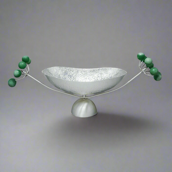Enhance your decor with this exquisite Silver Plated Nakshi Decorative Bowl, featuring intricate detailing and accompanied by a stunning resin ball. Perfect for adding a touch of elegance to any space, this piece blends traditional craftsmanship with contemporary design, making it a beautiful addition to your home or office.