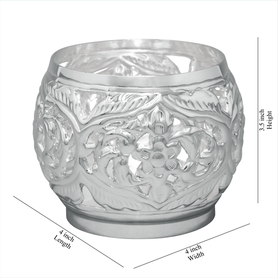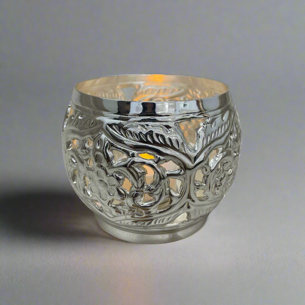 The Nakshi Round Tea Light Holder combines elegance and functionality in one exquisite piece. Crafted with meticulous attention to detail, this tasteful holder beautifully showcases your tea lights, creating a warm and inviting ambience in any space. Its intricate design and durable construction make it a perfect addition to your home decor, adding a touch of sophistication to any room. Illuminate your surroundings with style using this stunning light holder