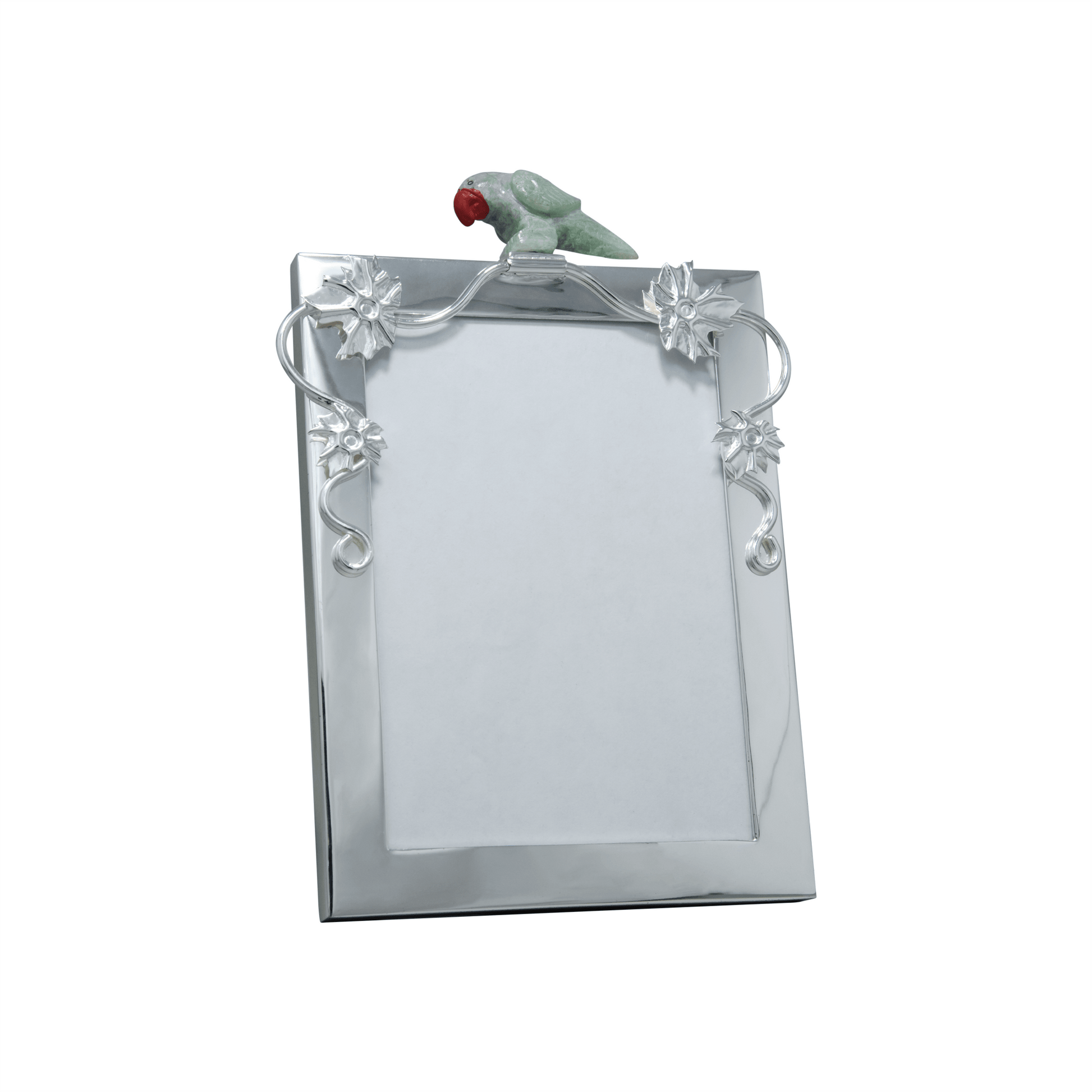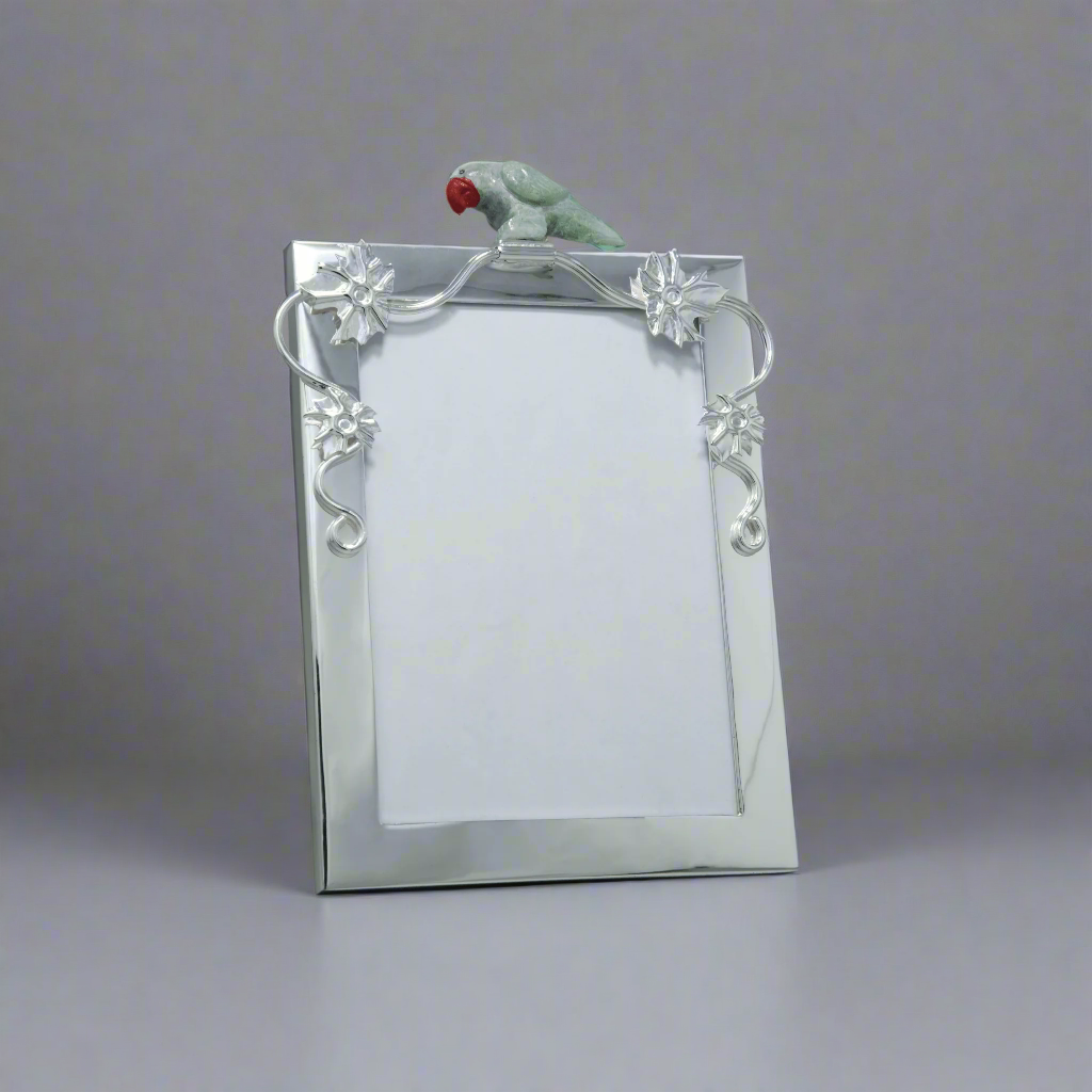 The Parrort picture frame, crafted in pure silver plating, serves as a protective and decorative border for artworks, enhancing their display by both safeguarding them and integrating them aesthetically with their surroundings.