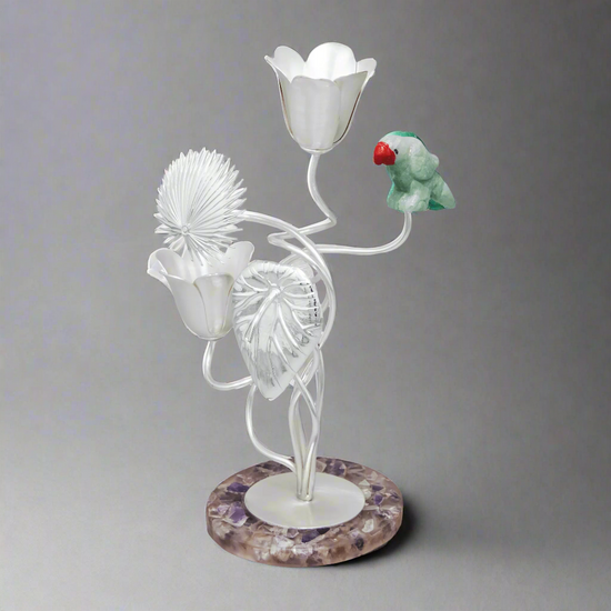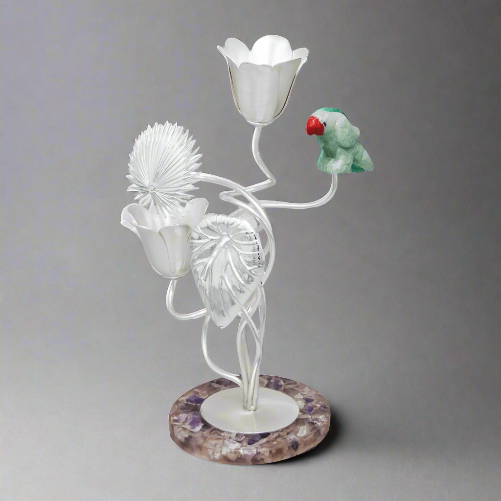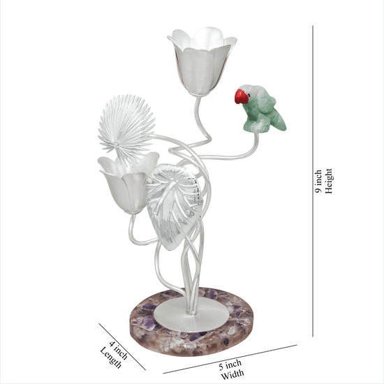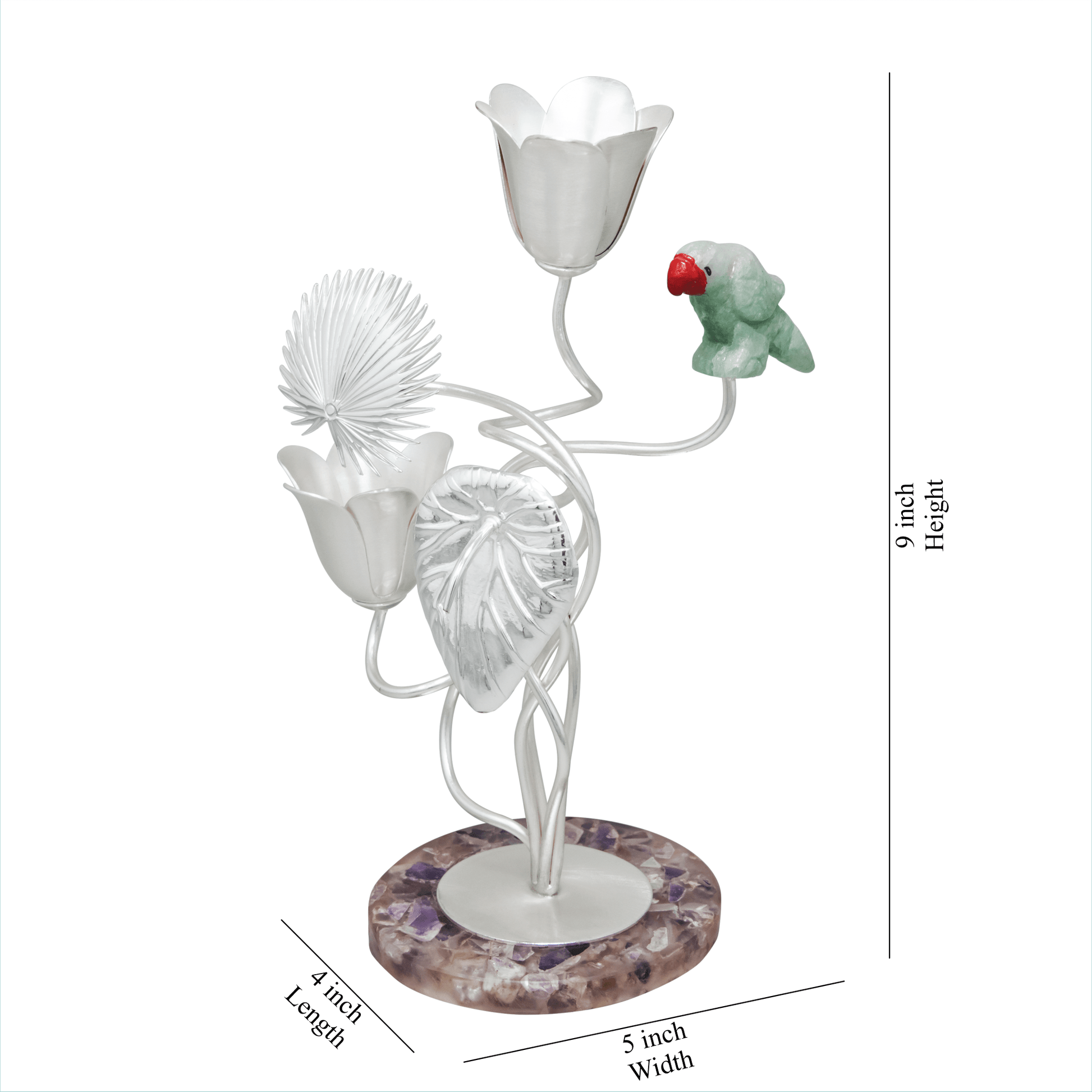 Get a sparkling illumination for your living room with this single candle stand. The unique design echoes vividly class and panache. The premium quality brass with silver plating used in its design bestows a luxurious finish.