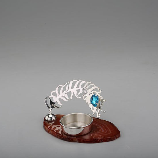 Peacock Feather Tee Light Holder on Agate Stone Sterling Silver