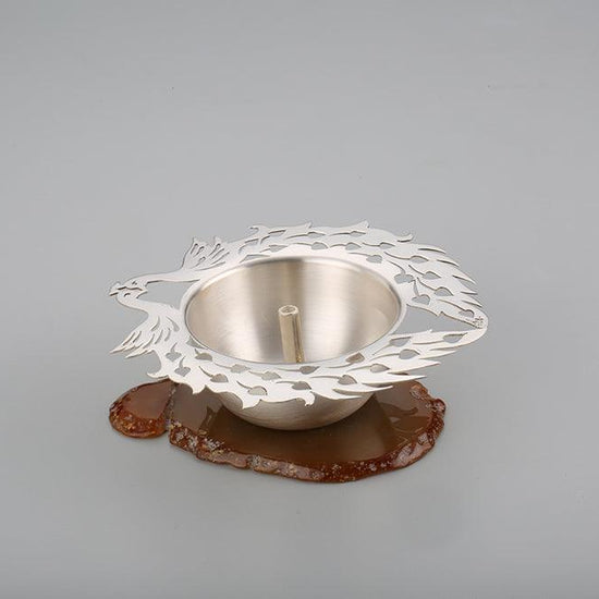 Peacock Jyot with Agate Base Sterling Silver