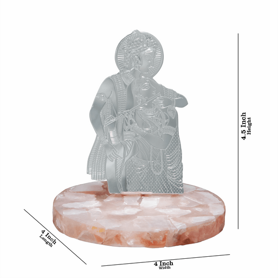 Crafted from high-quality brass with a gleaming silver plating, the Radha Krishna Ji Showpiece is a stunning figure elegantly mounted on a base of rose quartz, exuding serene beauty. Ideal for placement in your car or on a table, it serves as both a spiritual symbol and an attractive decorative accent, enhancing your space with its exquisite presence.