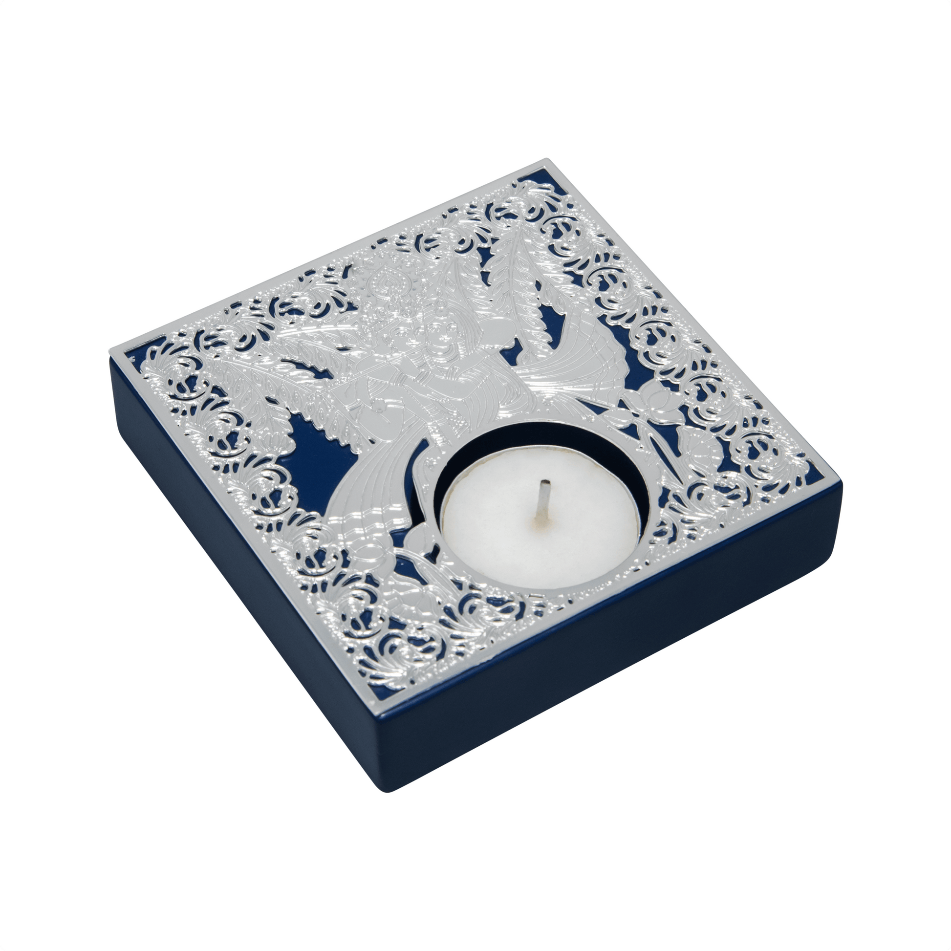 Radha krishna Ji Silver plated square Tea Light