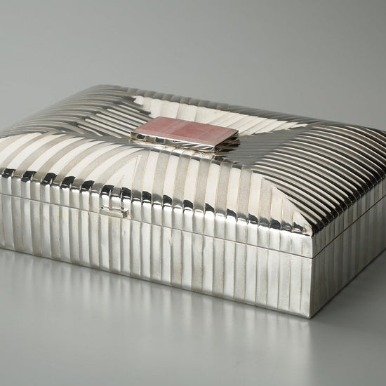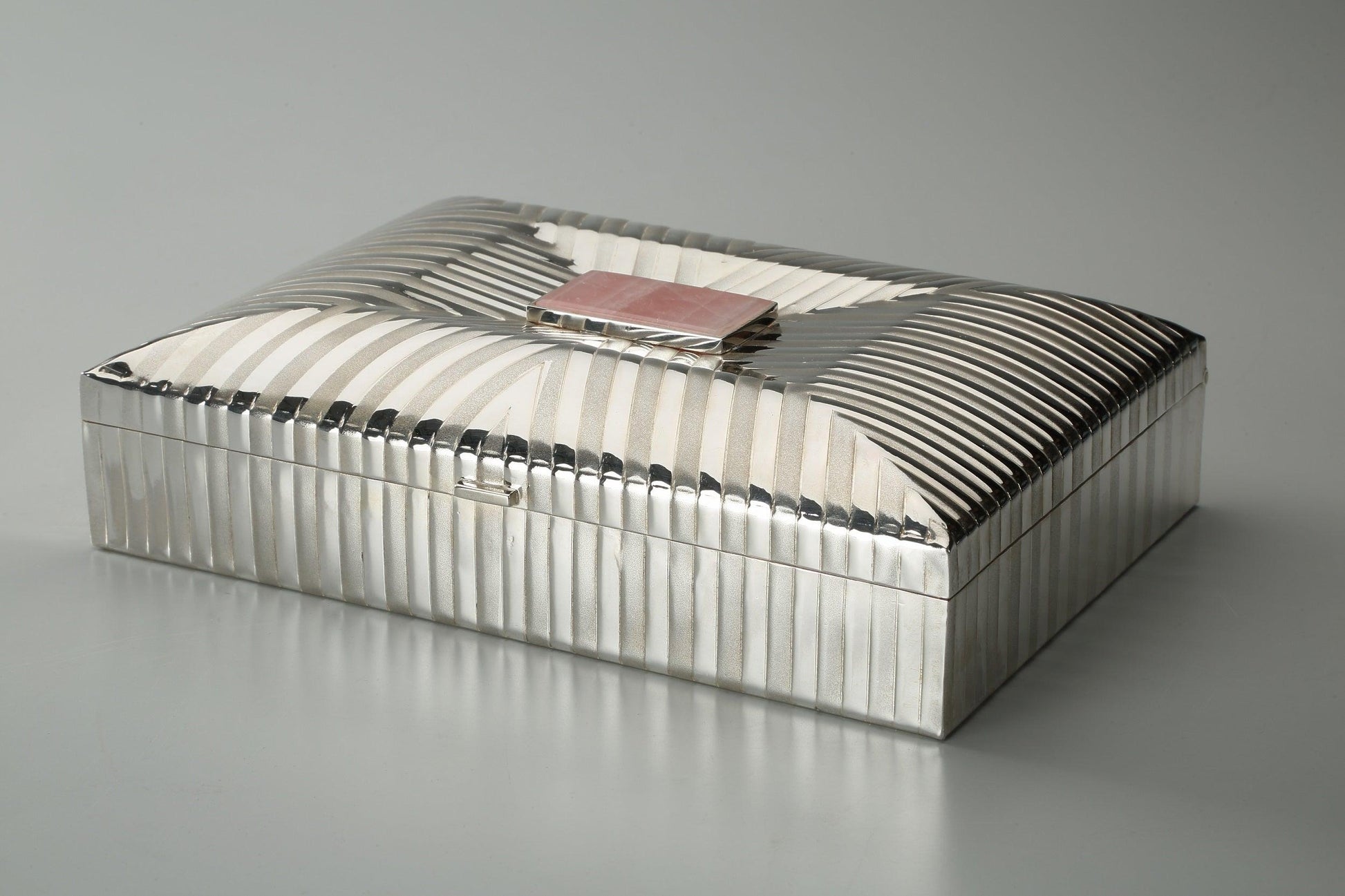 Ribbed Condiments Box with Rose Quartz Plate Sterling Silver
