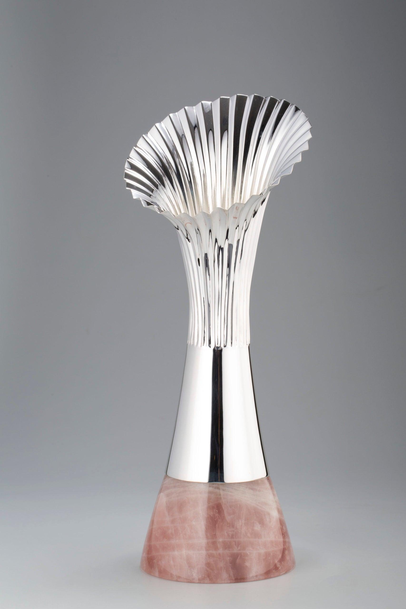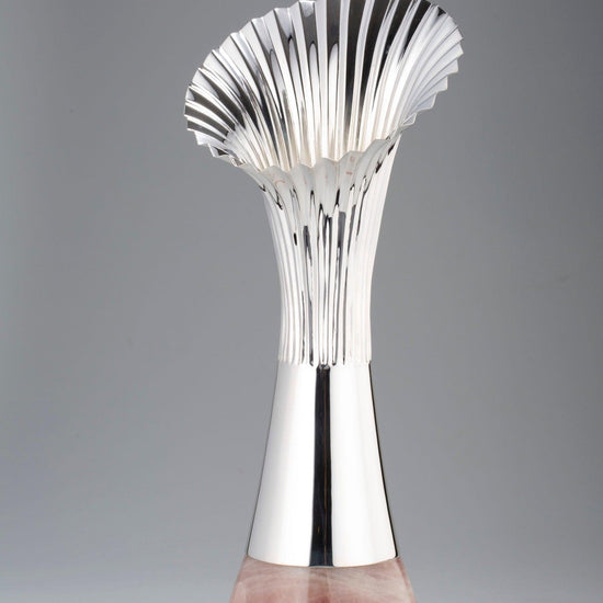 Ribbed Long Vase with Rose Quartz Stone Base Sterling Silver