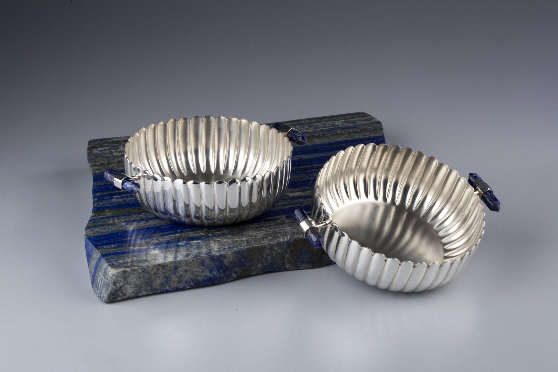 Ribbed Nut Bowls with Lapiz Stone Handles