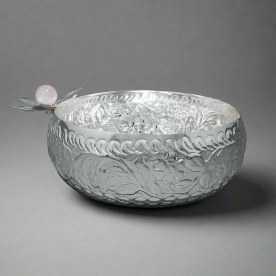 Elevate your home with beautiful Rippouse Bowl, crafted from brass with a silver plated finish. The intricate and eye-catching lotus flower design is perfect for adding an elegant touch to your home. An ideal piece of decoration for your living space, it's sure to impress all your guests.