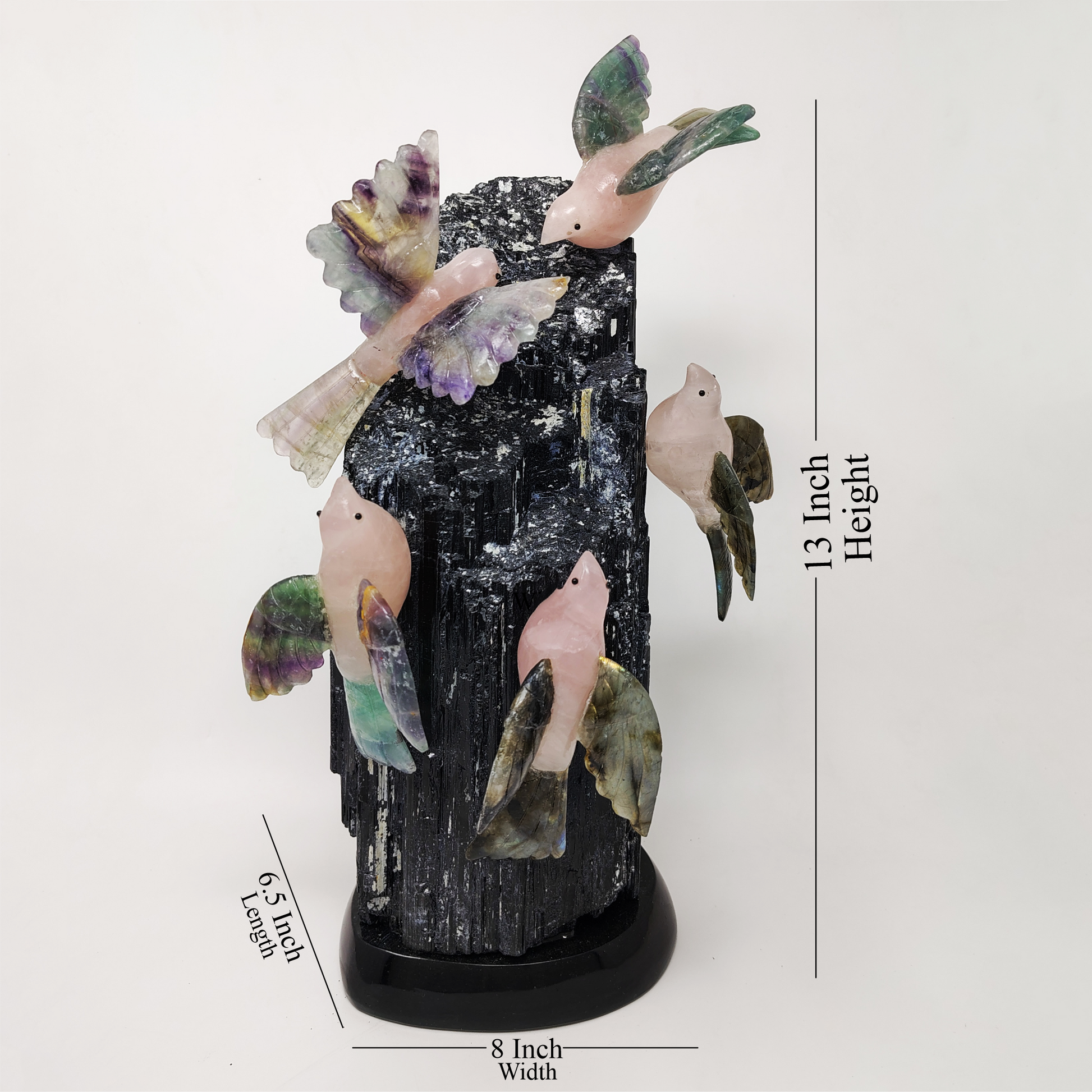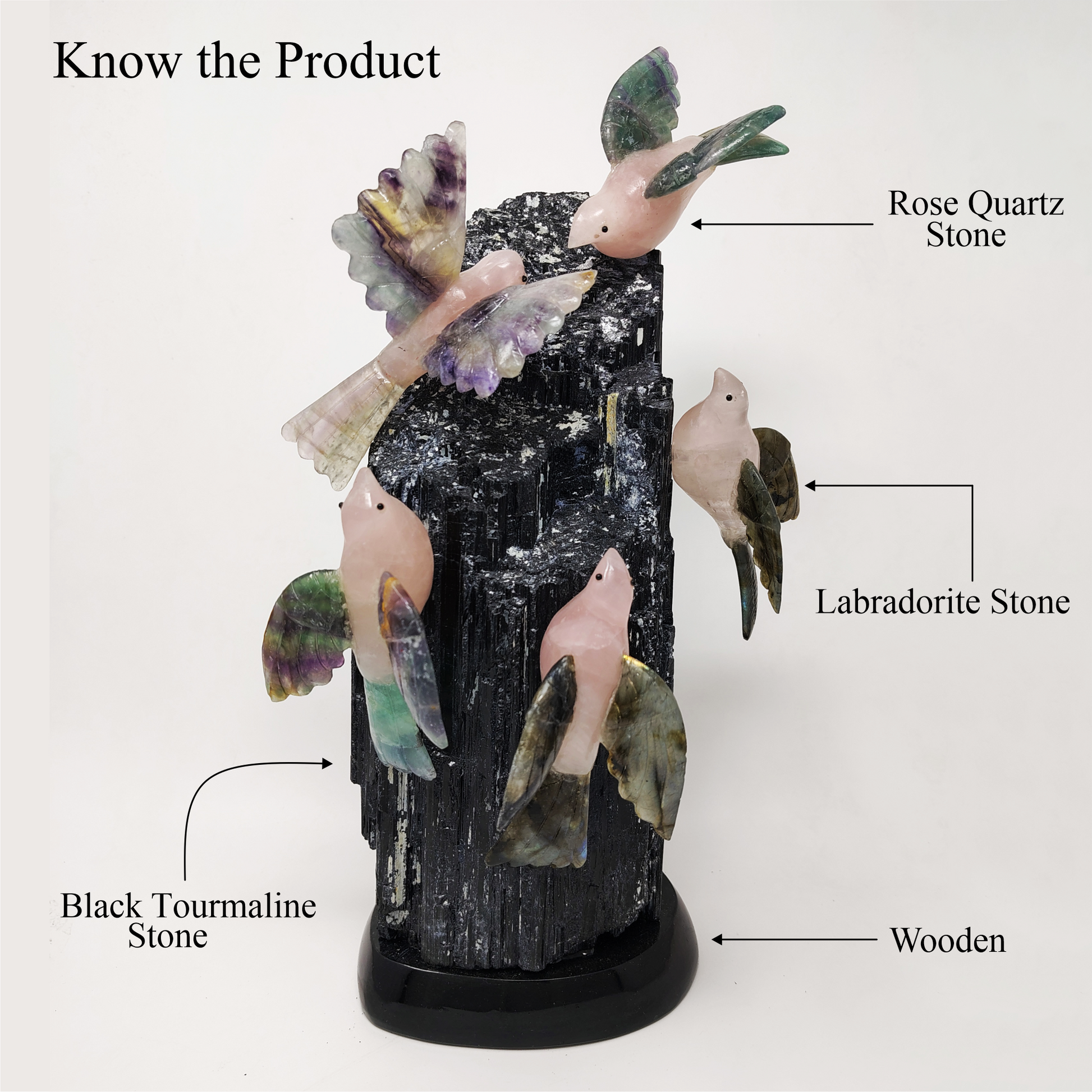 Expertly crafted from Rose Quartz and Labradorite Stone, these Birds Figurines are a stunning addition to any collection. The attached Black Tourmaline Stone provides grounding energy, making them perfect for meditation or décor. Bring a touch of nature and positive energy into your space with these unique figurines.