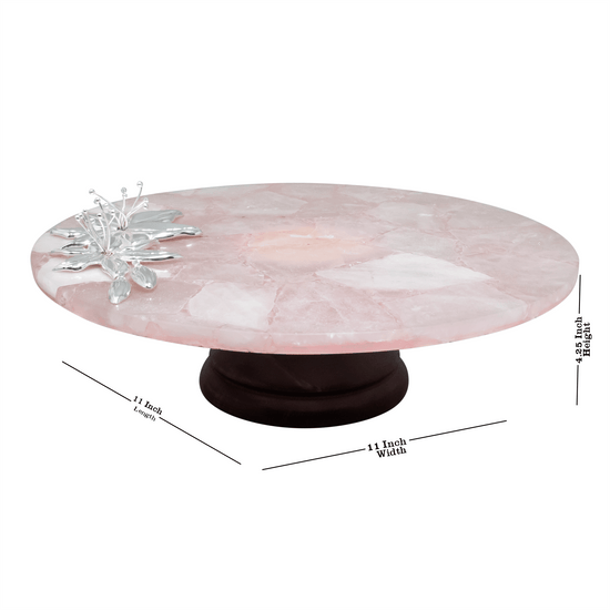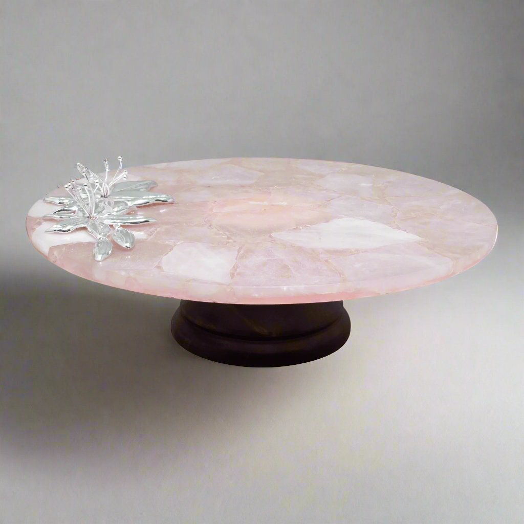 Rose Quartz Flower Round Cake Platter with wood base
