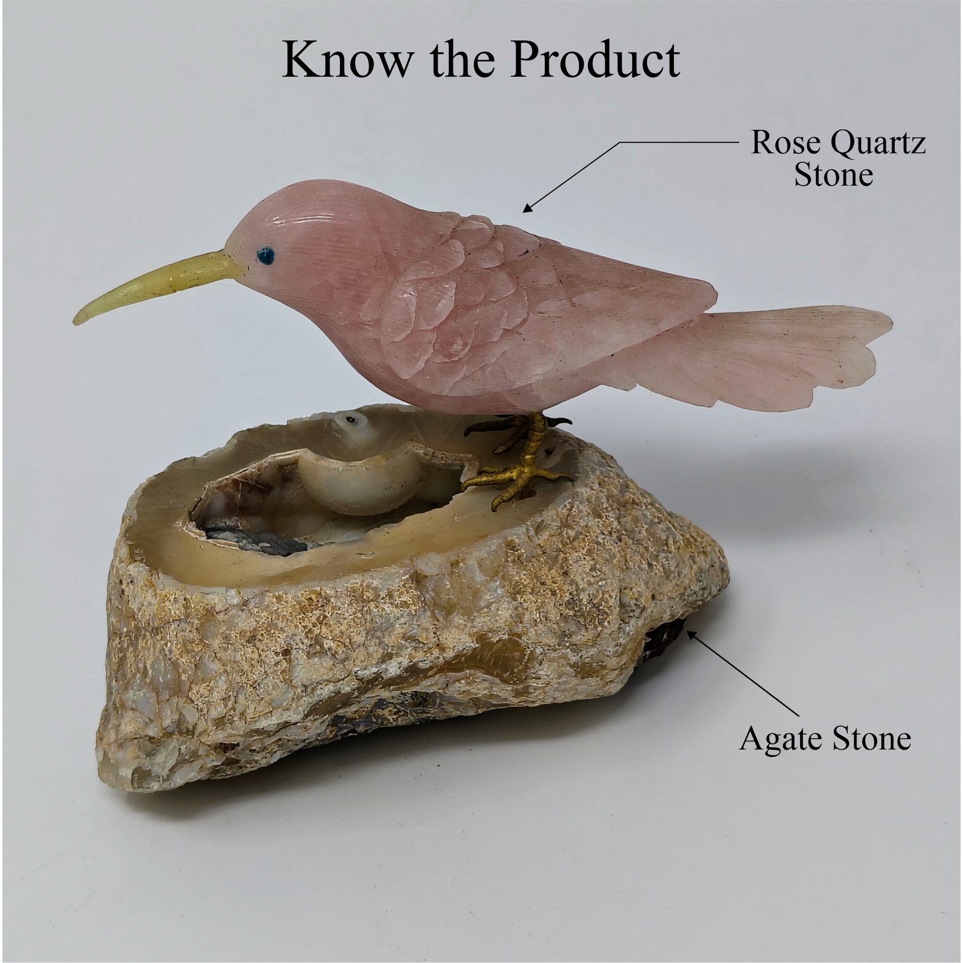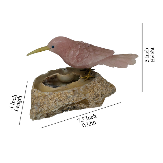 This beautiful Rose Quartz Hummingbird perched on natural Agate is the perfect showpiece for your tabletop. Delicate and elegant, it adds a touch of nature and tranquility to any room. Crafted with high-quality materials, this figurine is sure to become a beloved addition to your home.