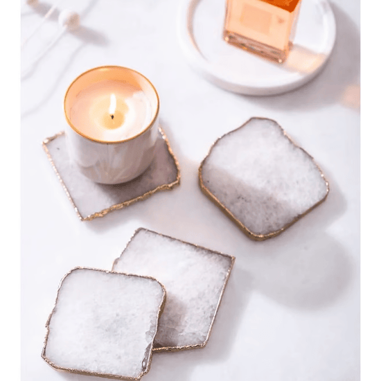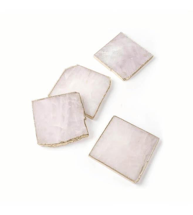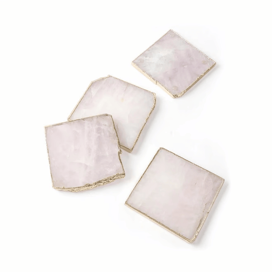 Rose Quartz Natural Coaster with Golden Gilded (Set of 4)