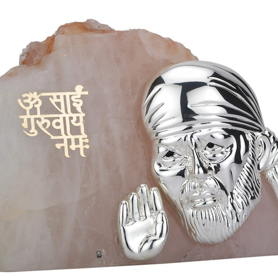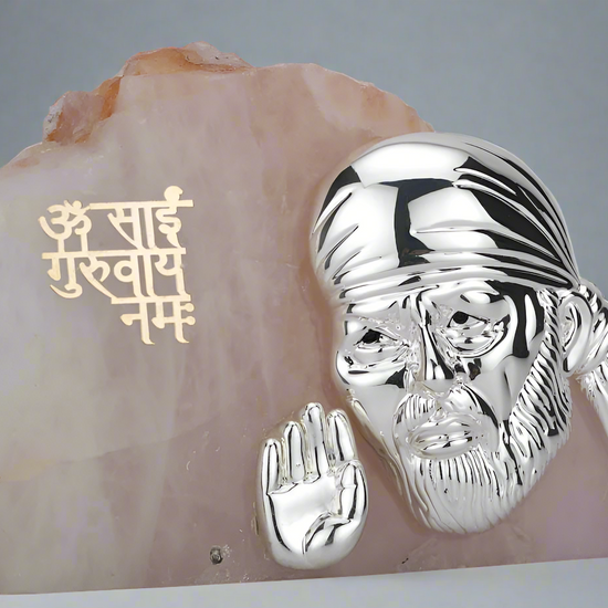 Discover peace and clarity with our Sai Baba Devalaya (Rose Quartz). Delicately crafted from 999 silver, the divine figure rests on a stunning rose quartz stone. Experience the healing powers of rose quartz while connecting with the divine energy of Sai Baba. A perfect addition to your spiritual practice.