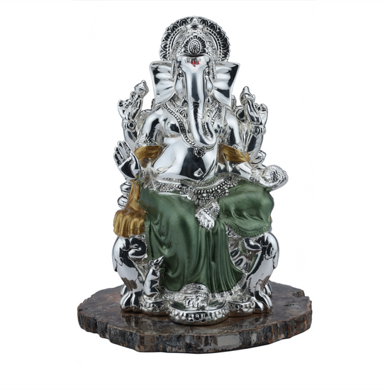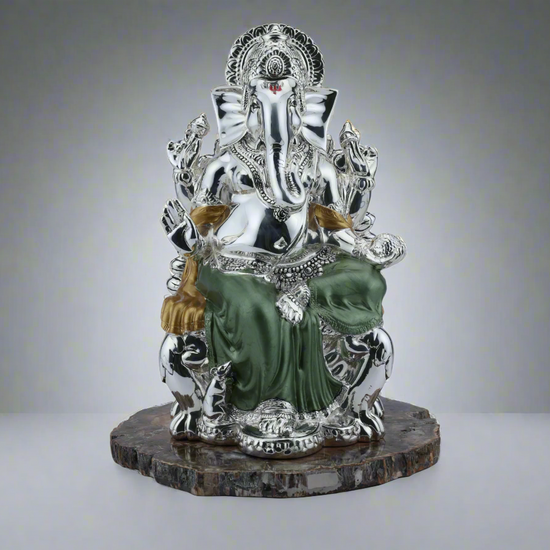 Crafted from pure 999 silver, Samrat Ganesha on Stone Base is a luxurious and exquisite addition to any home or office. As a symbol of prosperity and wisdom, this stunning sculpture is the perfect statement piece for those seeking a touch of elegance and expertise in their decor.