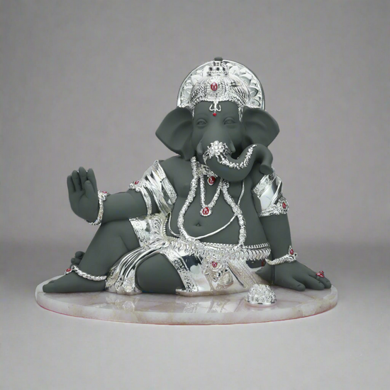 Experience abundance and prosperity with Samridhi Ganesha on Rose Quartz Base. Made from high-quality resin, this intricately designed statue radiates positive energy. Adorned with pure 999 silver jewelry, it brings blessings and success into your space. Expertly crafted for a meaningful addition to any home or office.