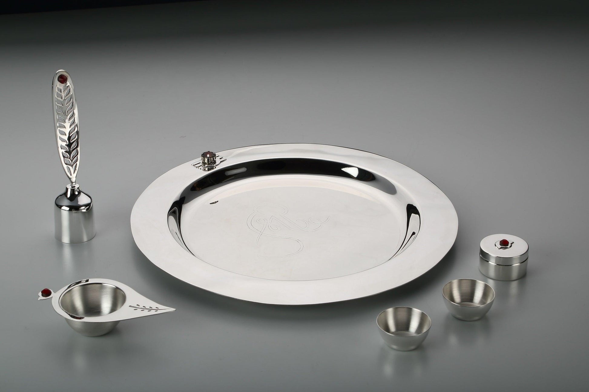 Shree Puja Thali Set Set of 6 Sterling Silver