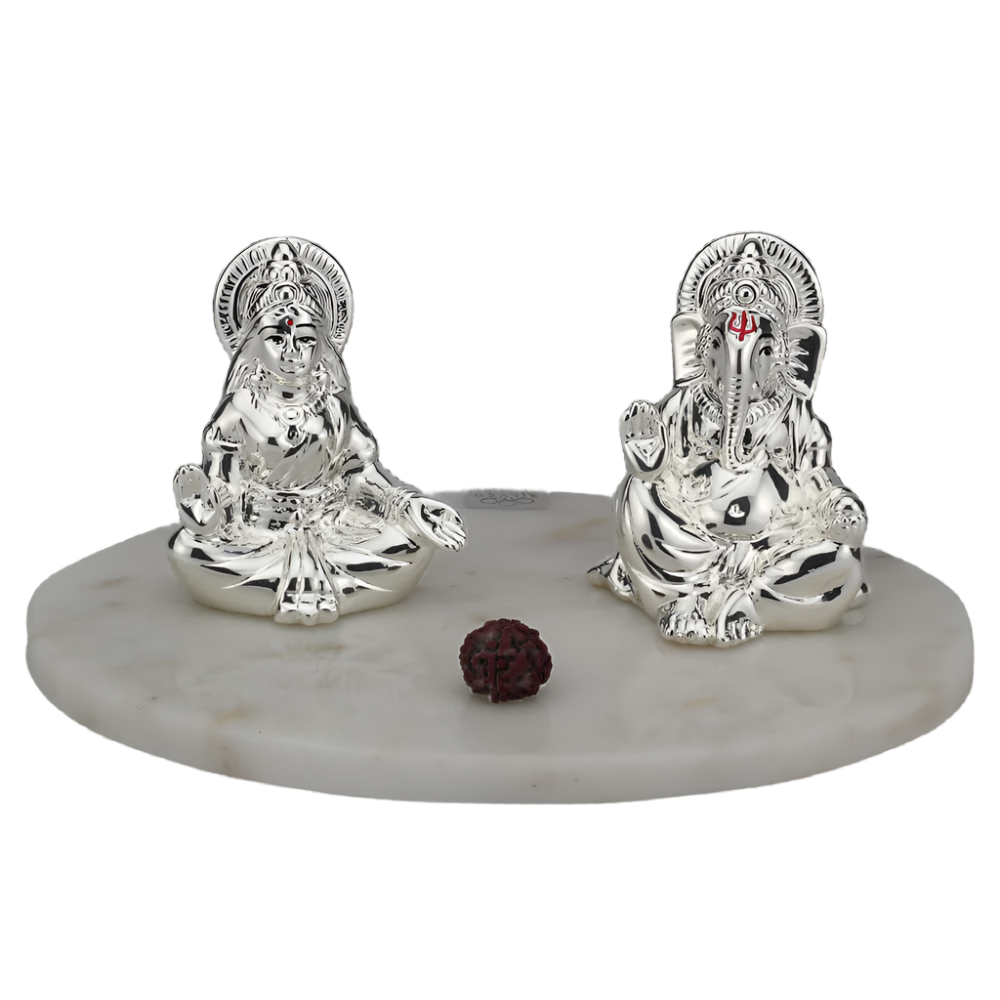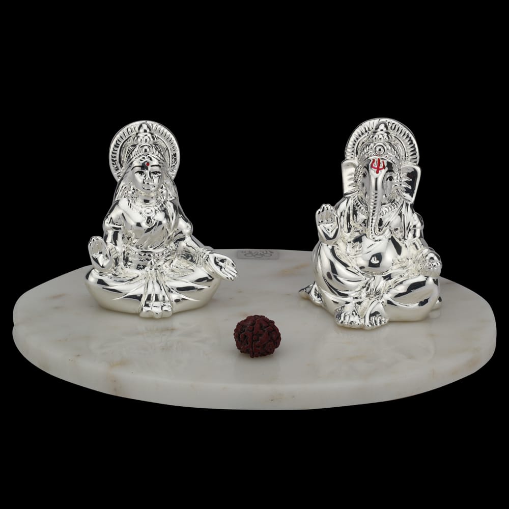 Shubh Lakshmi Ganesha is a unique and auspicious piece crafted from pure 999 silver resting on a sturdy stone base. Adorn your home with the blessings of Goddess Lakshmi and Lord Ganesha, believed to bring prosperity and success. A perfect addition to any sacred space.
