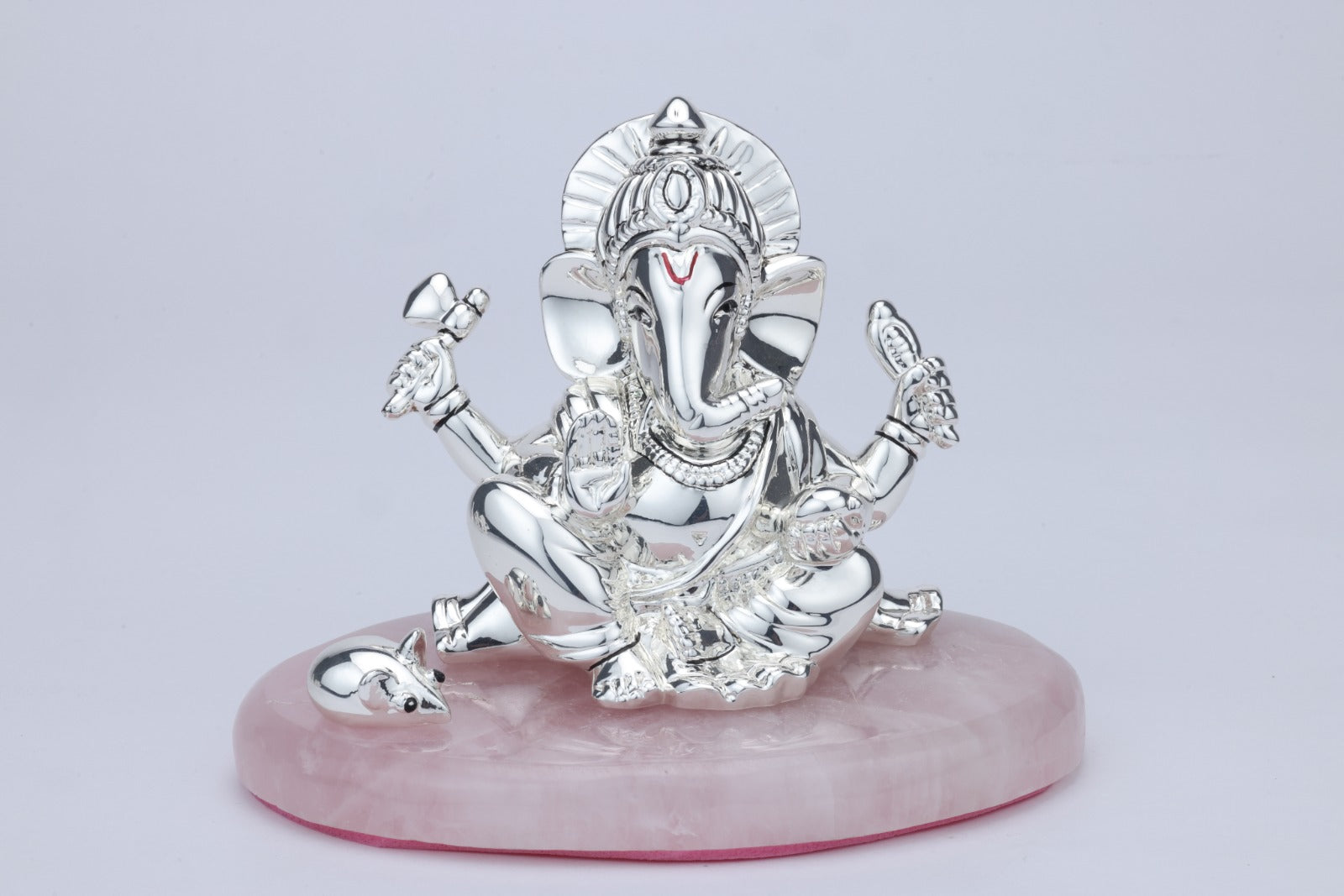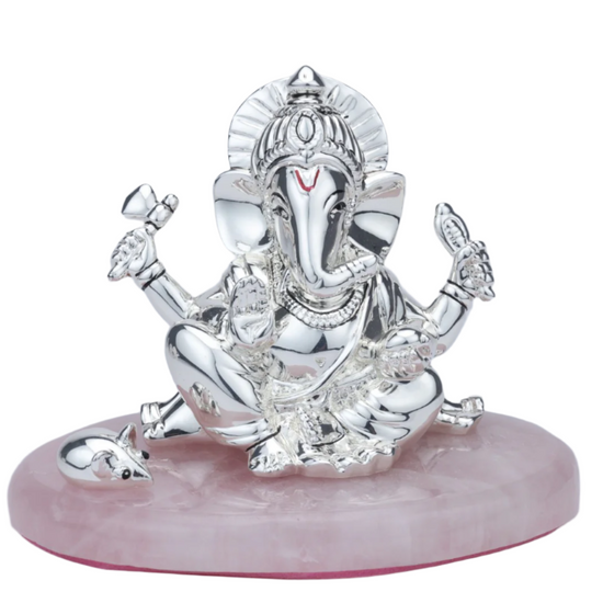 Silver Ganesha Namah on Rose Quartz Stone Base