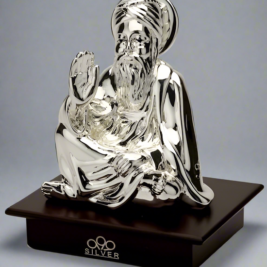 Crafted with pure 999 silver, the Silver Guru Nanak Dev on wood base is a timeless and elegant piece. With its intricate details and high quality materials, this statue is a must-have for those seeking to honor the teachings of Guru Nanak Dev and add a touch of sophistication to their home or office.